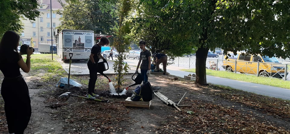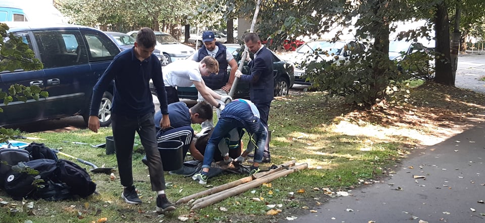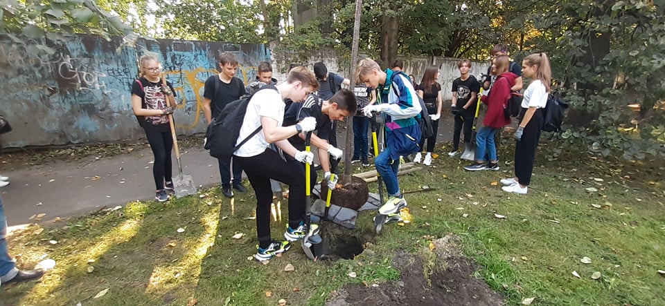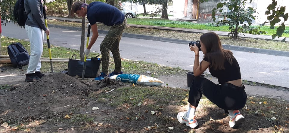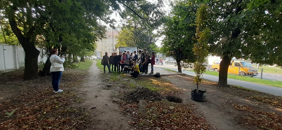 Добровольными помощниками подрядчика в посадке выступили девятиклассники 40 гимназии. Вместо зубрёжки алгебры и физики, ребята постигали тонкости биологии. Перед тем, как взять в руки лопаты, сотрудники отдела озеленения мэрии провели школьникам небольшой ликбез, о том как правильно сажать деревья, подвязывать их и поливать.