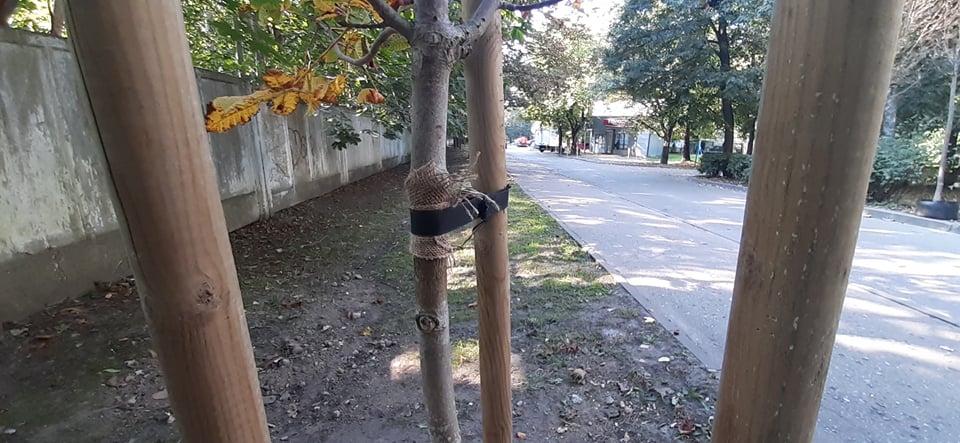 Когда-то на этом месте росли тополя, деревья ломкие и аллергенные, более низкой категории ценности. Тополя были признаны аварийными (одно дерево на этой улице даже упало на автомобиль) и были в итоге убраны.