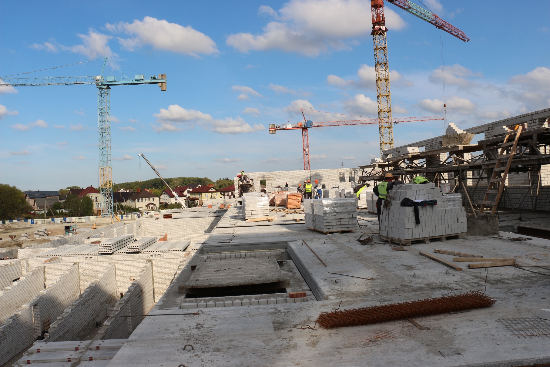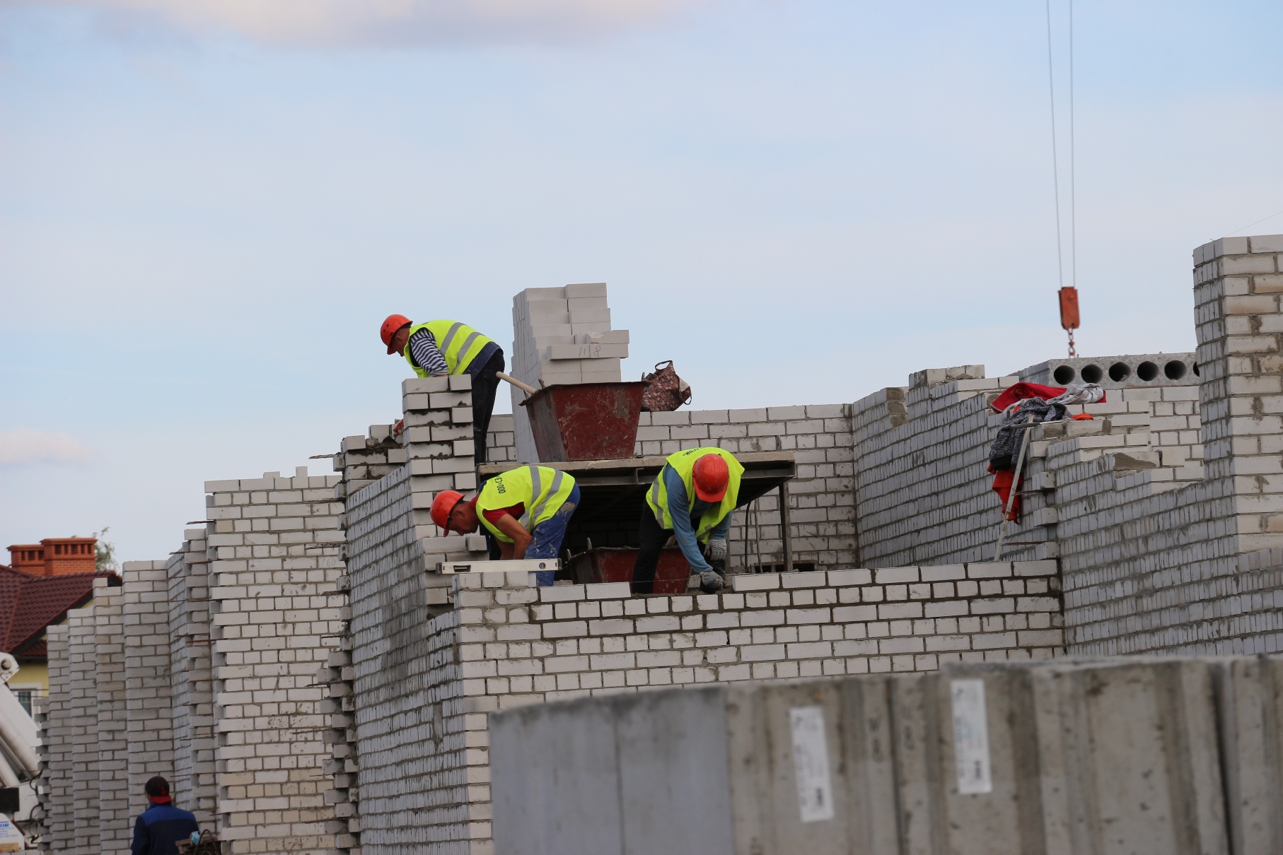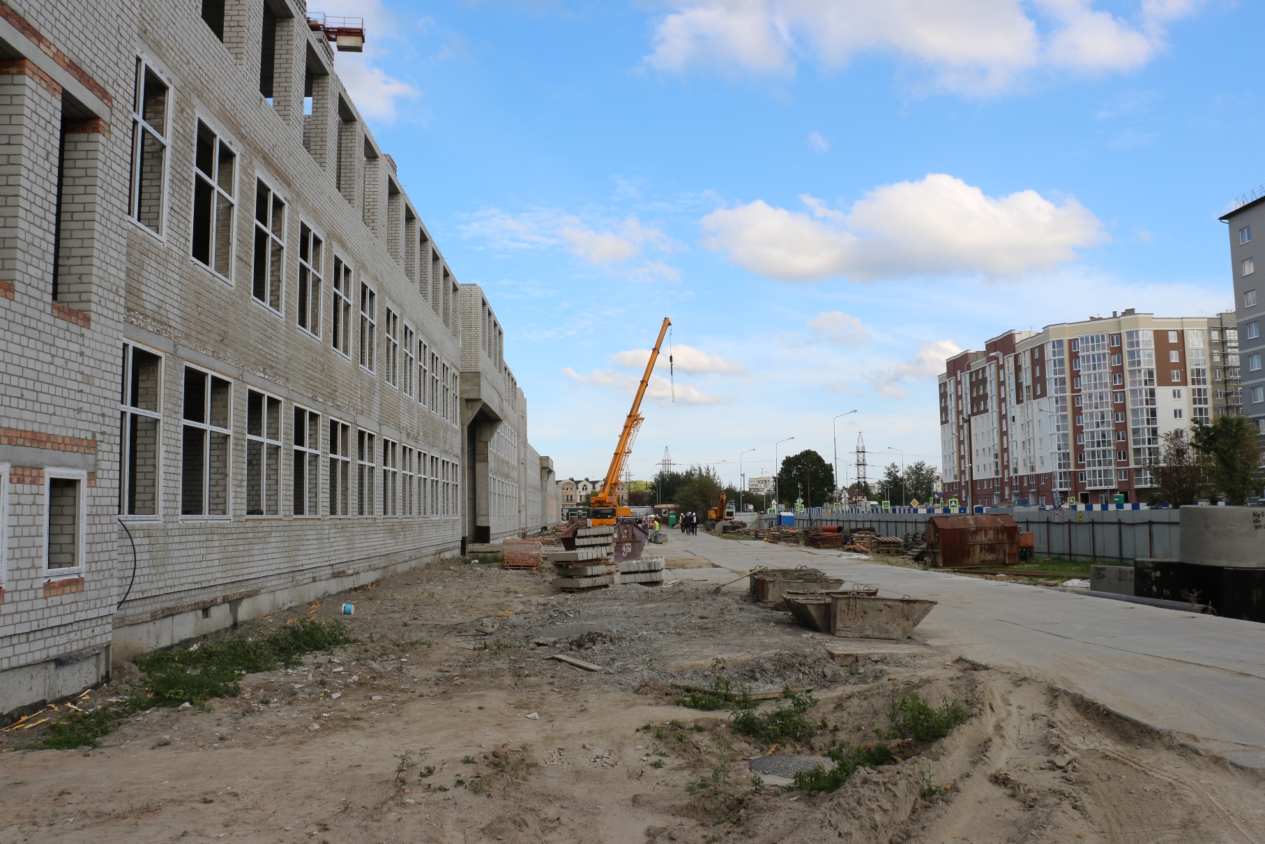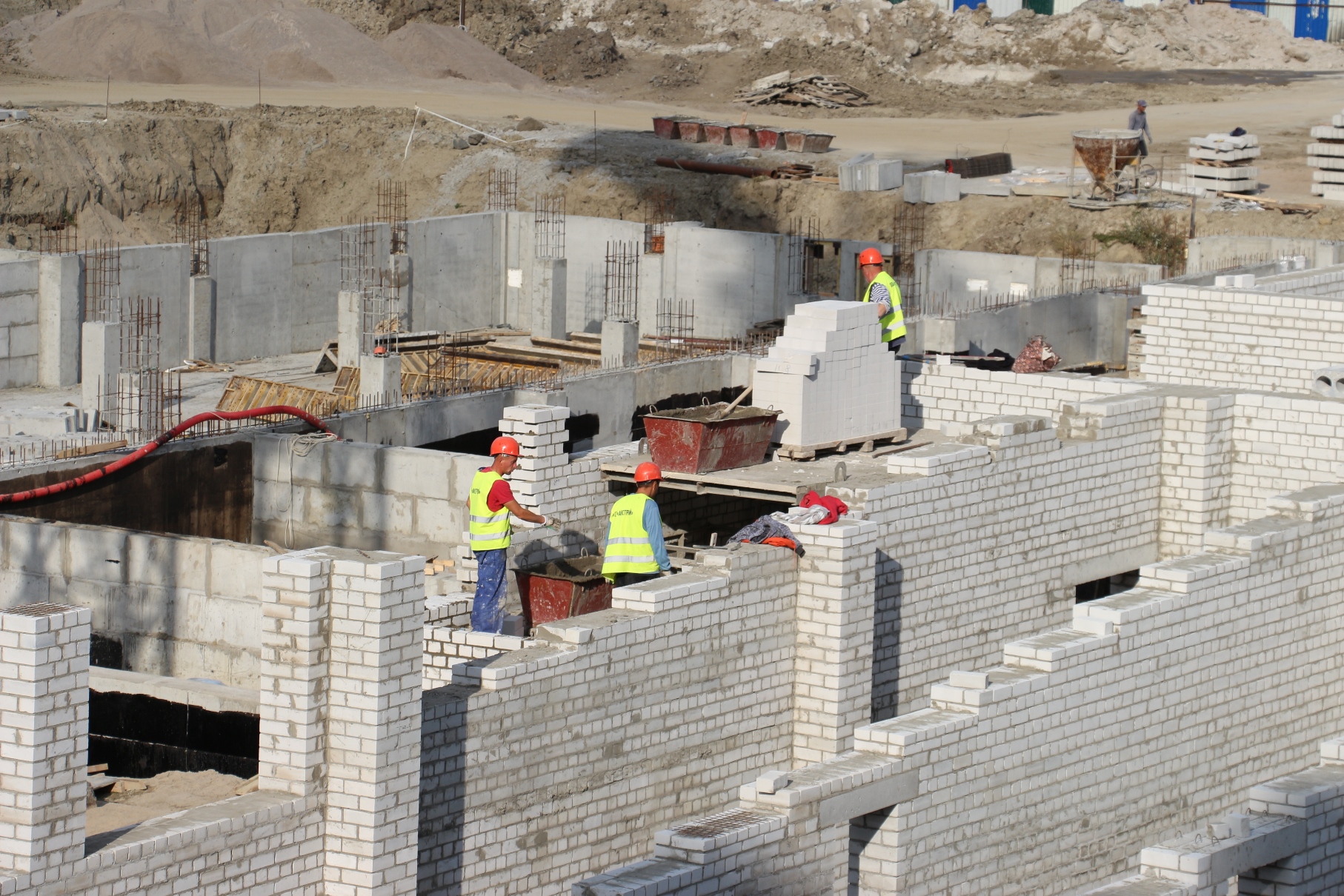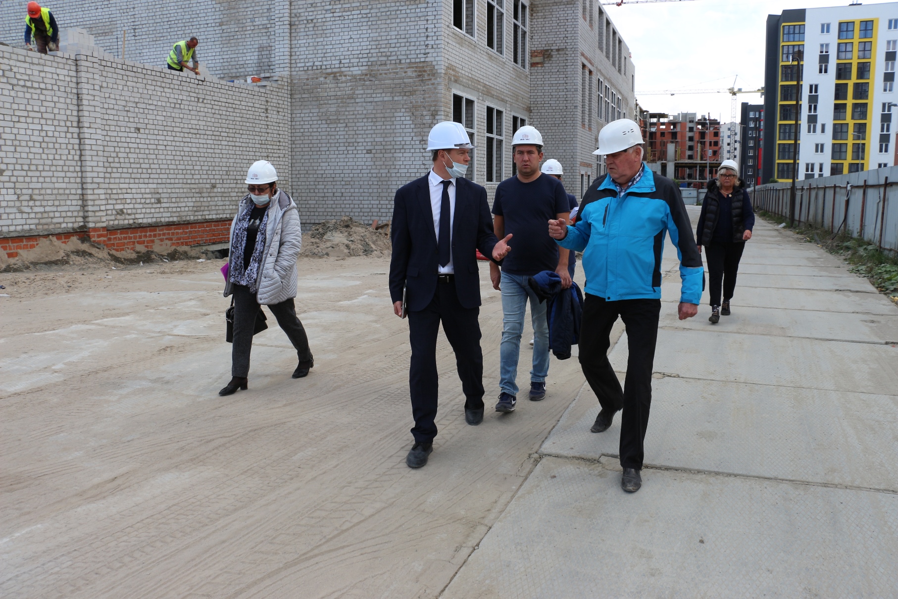 На 4-х блоках строящейся школы на ул. Рассветной сейчас трудится около 150 человек. На одном из блоков уже приступили к возведению стен 3-го этажа. Об этом сообщил председатель КТРиС Артур Крупин 29 сентября во время выездного совещания на стройплощадке.