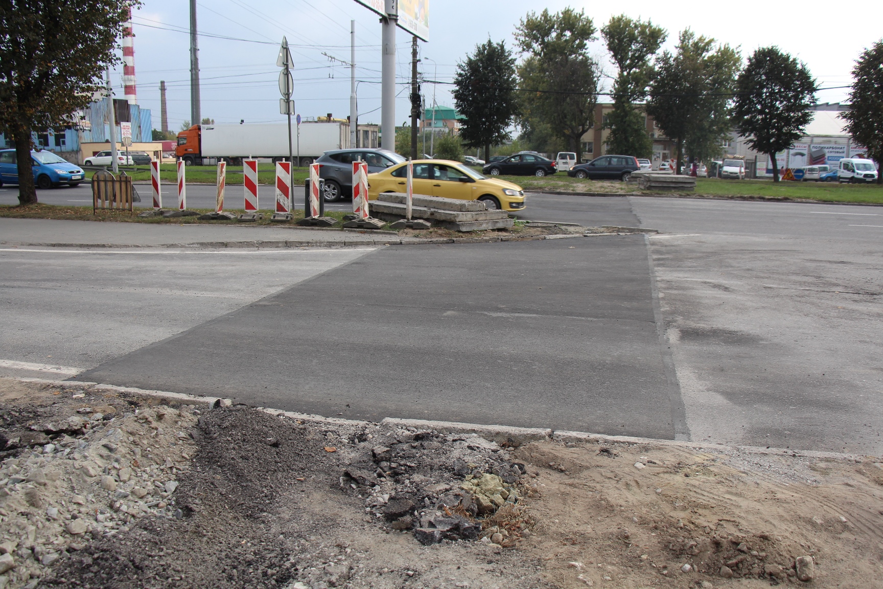 При строительстве ул. Суздальской через проспект был проложен коллектор, а место раскопок укрыто плитами. На днях дорожники убрали плиты и уложили первые два слоя асфальта, а также выровняли проезжую часть дороги-дублёра у «Факела». В ночь на субботу окончательно выровняют асфальт на месте раскопок на основной части проезжей части проспекта.