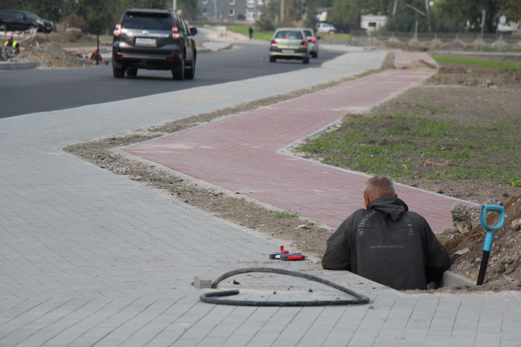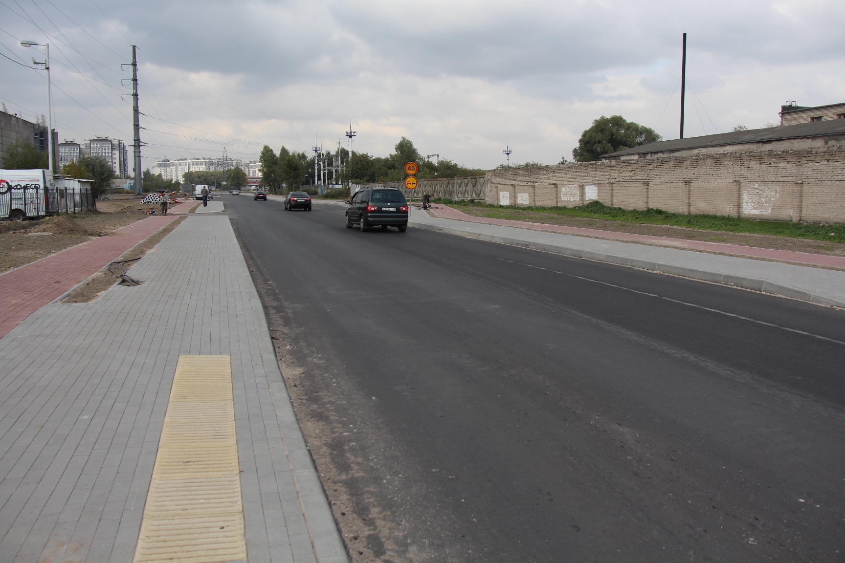 На всём протяжении Суздальской уже построили тротуары и велодорожки, тактильную плитку у будущих переходов, на дороге устроили заездные карманы на будущих остановках и уложили два слоя асфальта. Энергетики подготавливают основания и подводят соединения к будущим опорам наружного освещения.