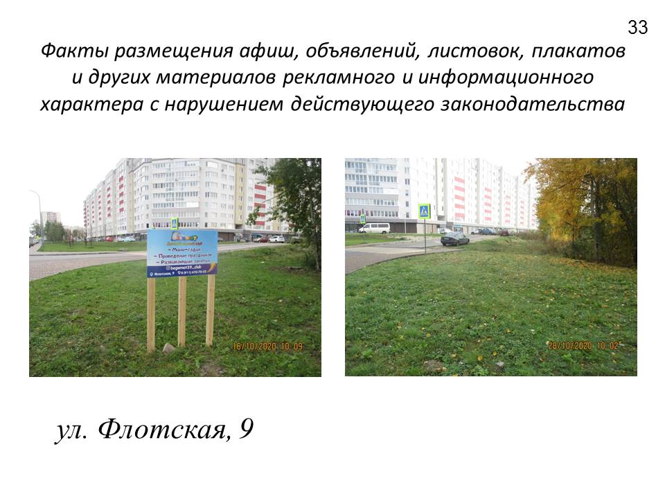 Вид города портит и несанкционированная реклама. Выявлены и пресечены факты размещения афиш, объявлений, листовок, плакатов и других материалов агитационного и информационного характера с нарушением действующего законодательства. По состоянию на 05 ноября 2020 в списке системы автоматического оповещения (автодозвон) значится 110 телефонных номеров абонентов-нарушителей, из которых 37 — 6-значные («городские») и 73 — 11-значные («мобильные») номера.