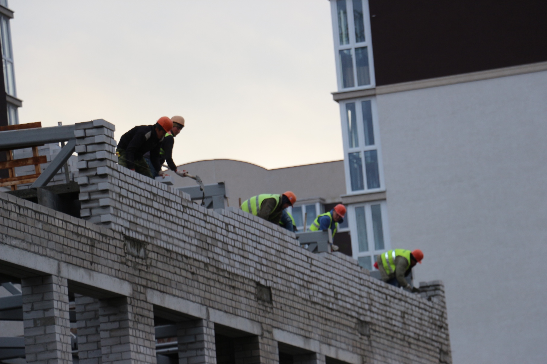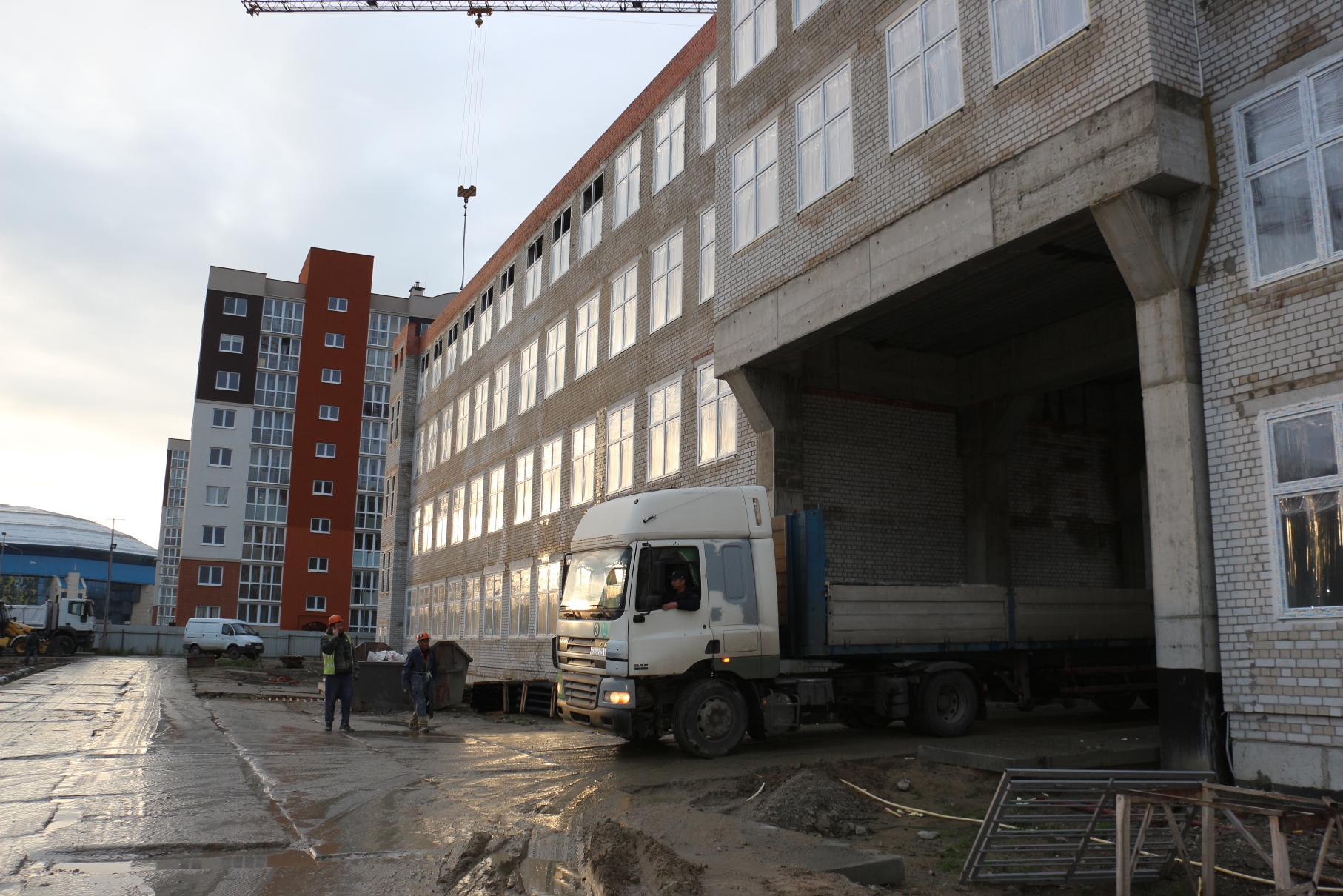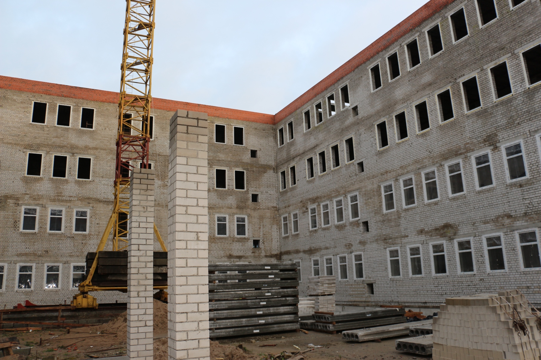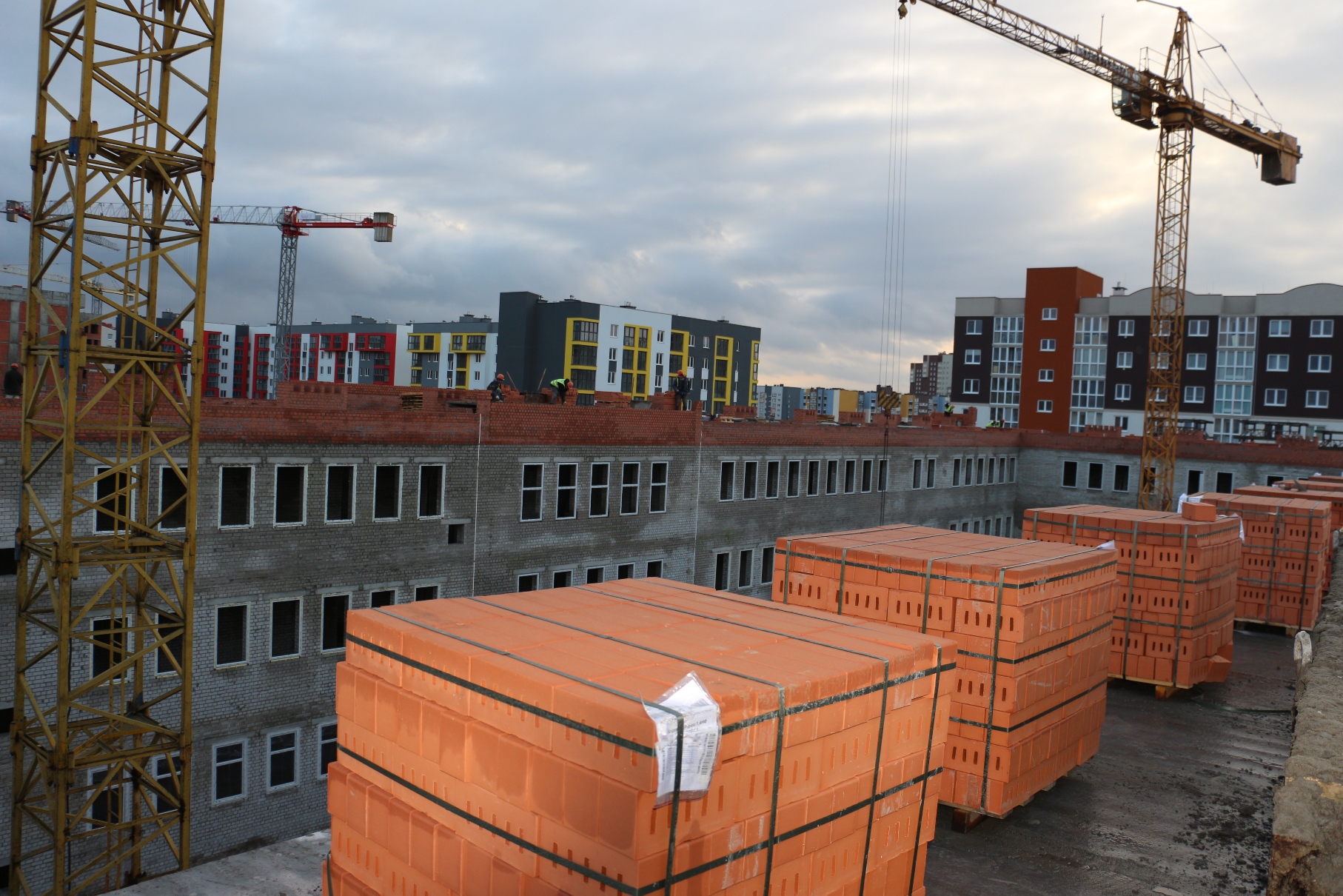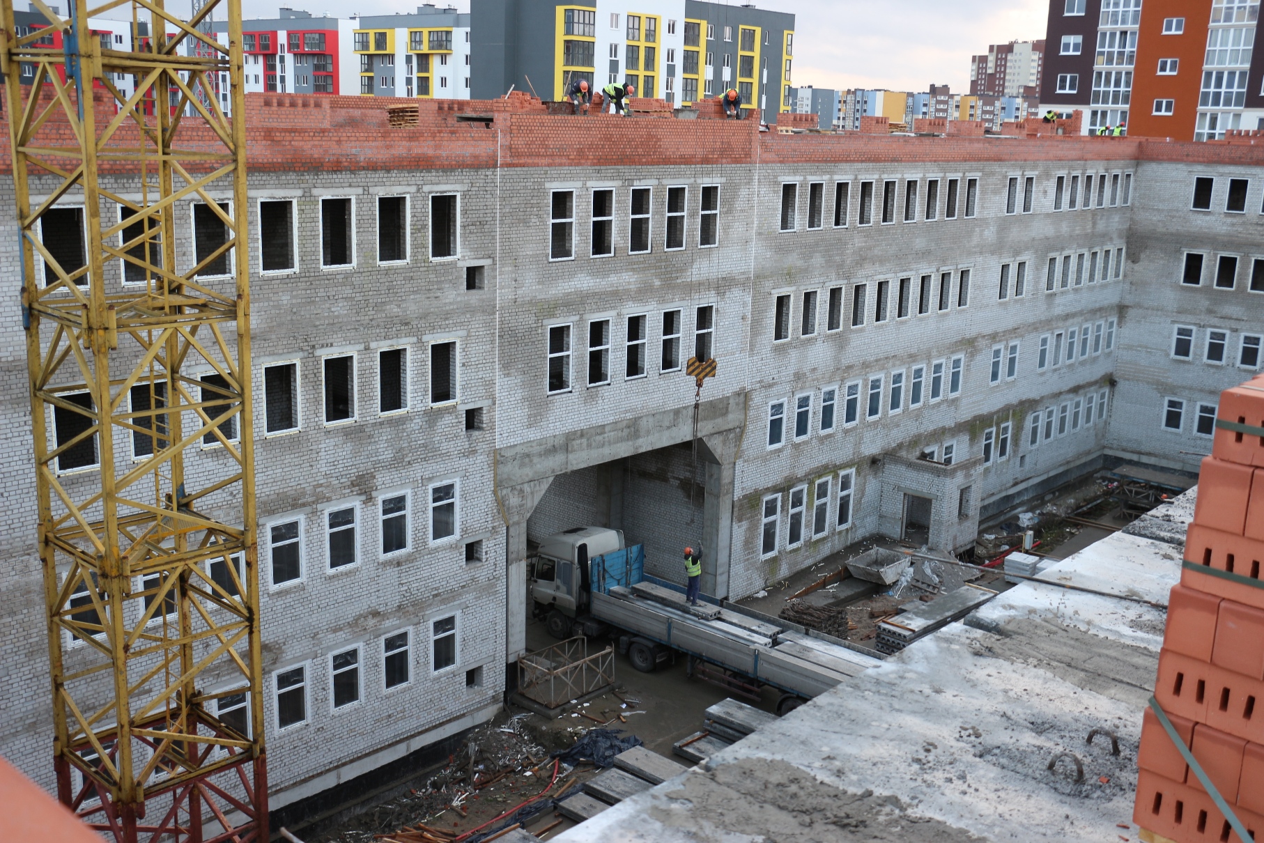 Генеральный подрядчик ООО СЗ «АК-СТРОЙ» приступил к работам на стройплощадке в апреле этого года. Сейчас на будущей школе завершается возведение 2,3,4-го блоков. Продолжаются работы по бетонированию полов, монтажу плит перекрытия, устройству монолитных железобетонных колонн, кирпичной кладке стен (в некоторых местах здание выросло уже до 4 этажа), устройству инженерных систем. Подрядчик приступил к монтажу плит перекрытия над главным актовым залом. Ведется остекление.