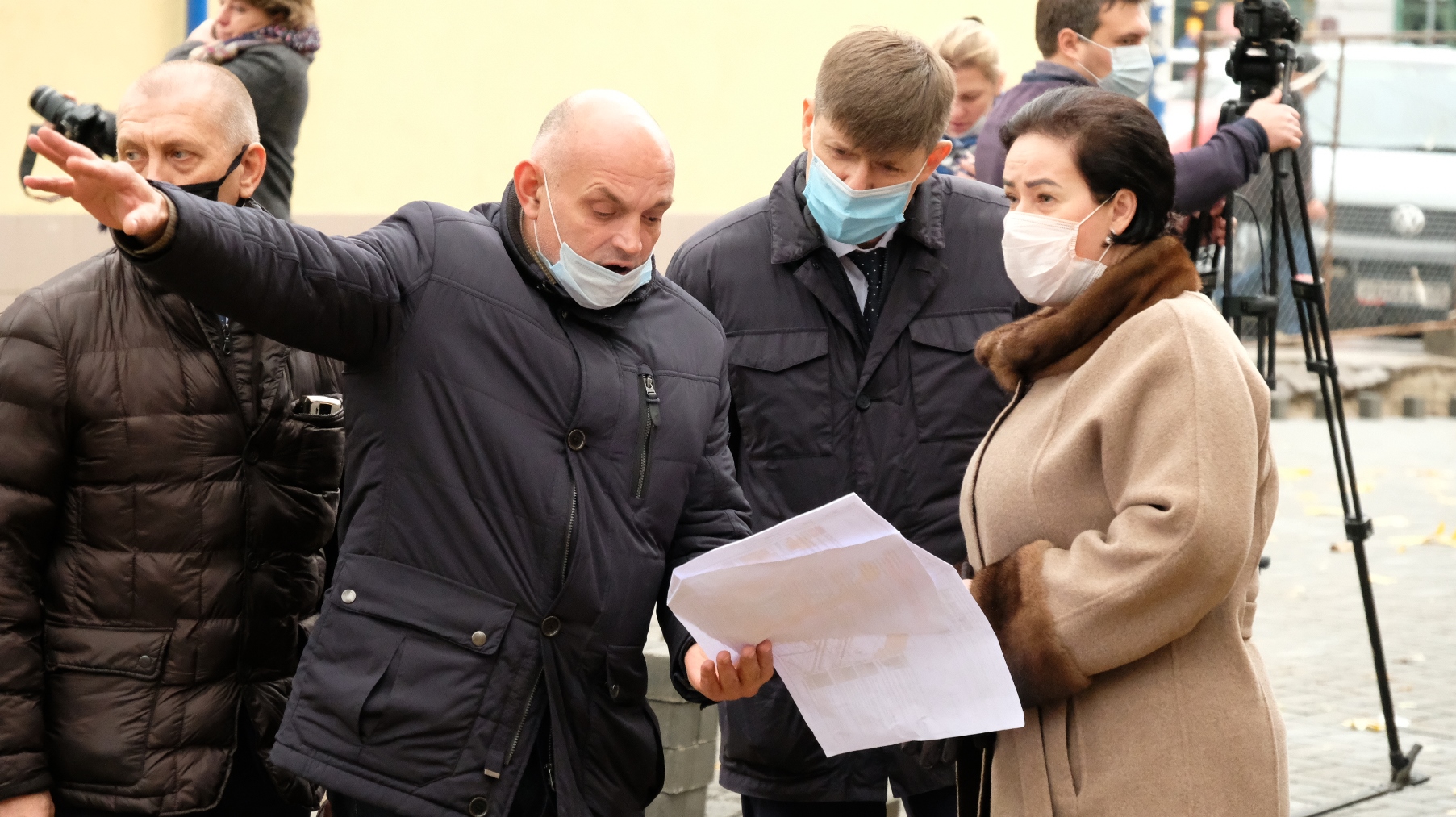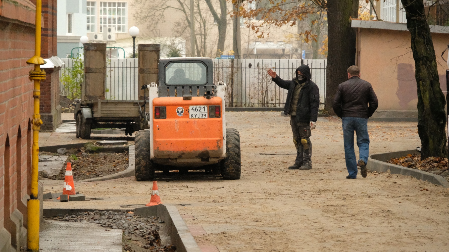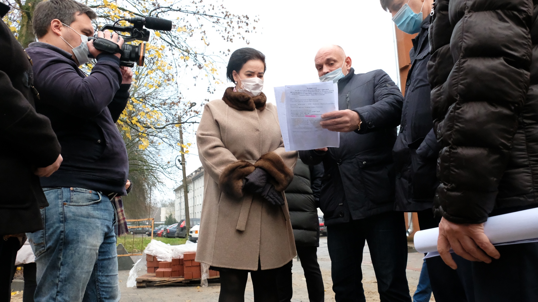 Временно исполняющая полномочия главы администрации города Елена Дятлова и глава Калининграда, председатель городского Совета депутатов Андрей Кропоткин сегодня, 18 ноября 2020 года, проверили ход ремонта дворовых территорий по программе «Формирование современной городской среды на 2020 год».