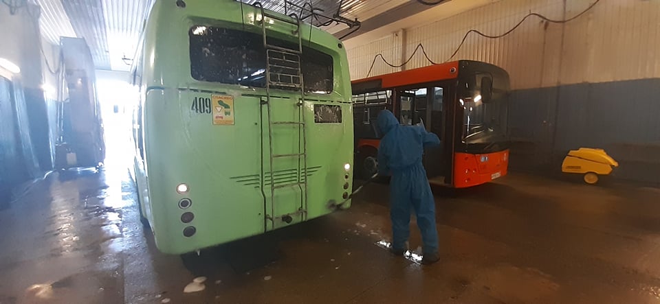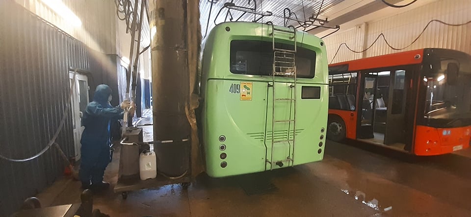 Все трамваи, троллейбусы и автобусы сразу после смены приезжают в гараж, где их сначала моют, а затем и дезинфицируют. “Оздоровительные” процедуры для техники проводятся ежедневно, как правило вечером и ночью. Впрочем, водители и кондукторы на конечных остановках в течение дня также регулярно проводят обработку поручней дезинфицирующими составами, проветривание салонов.