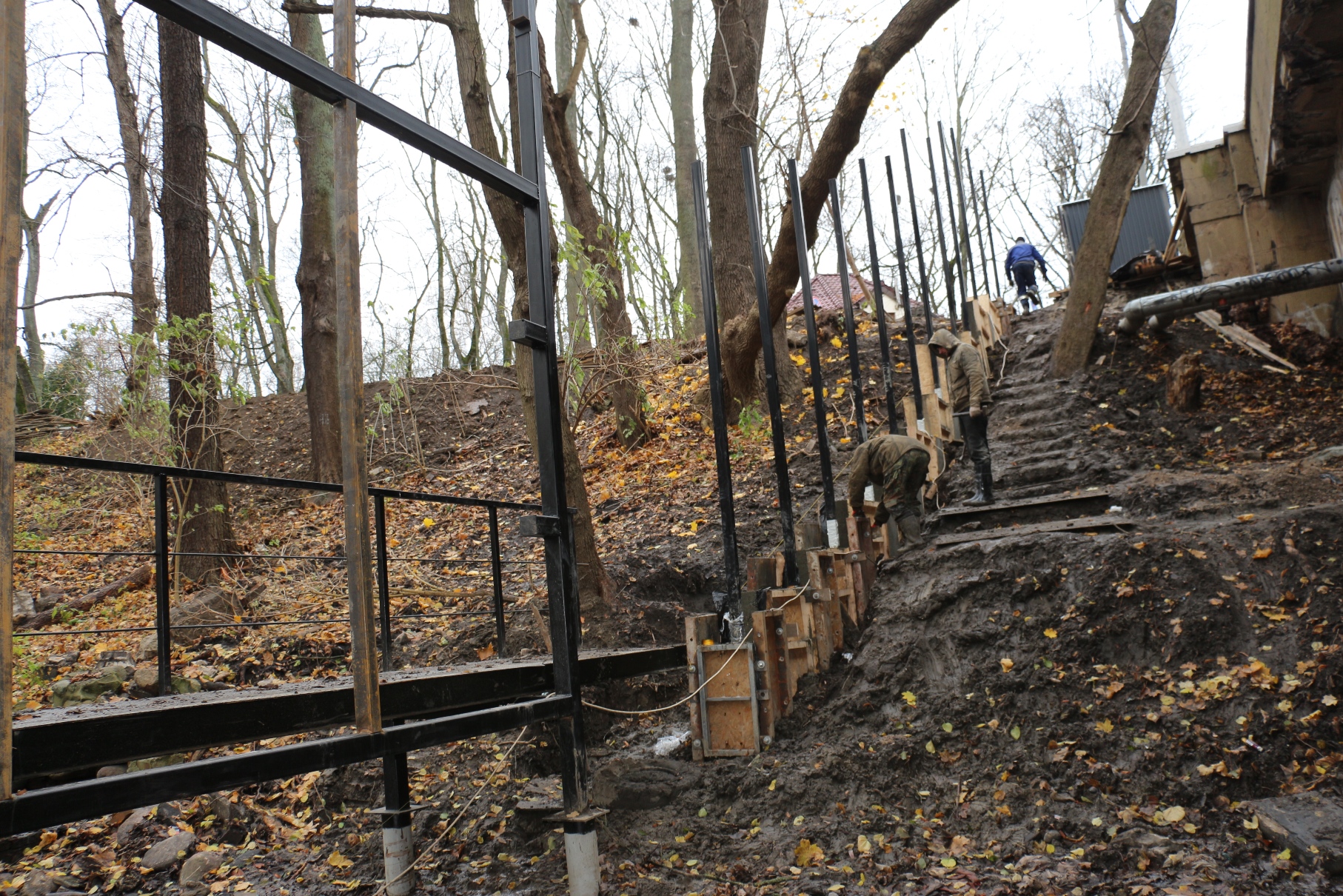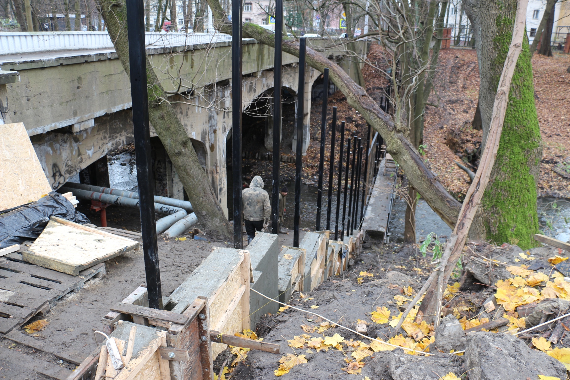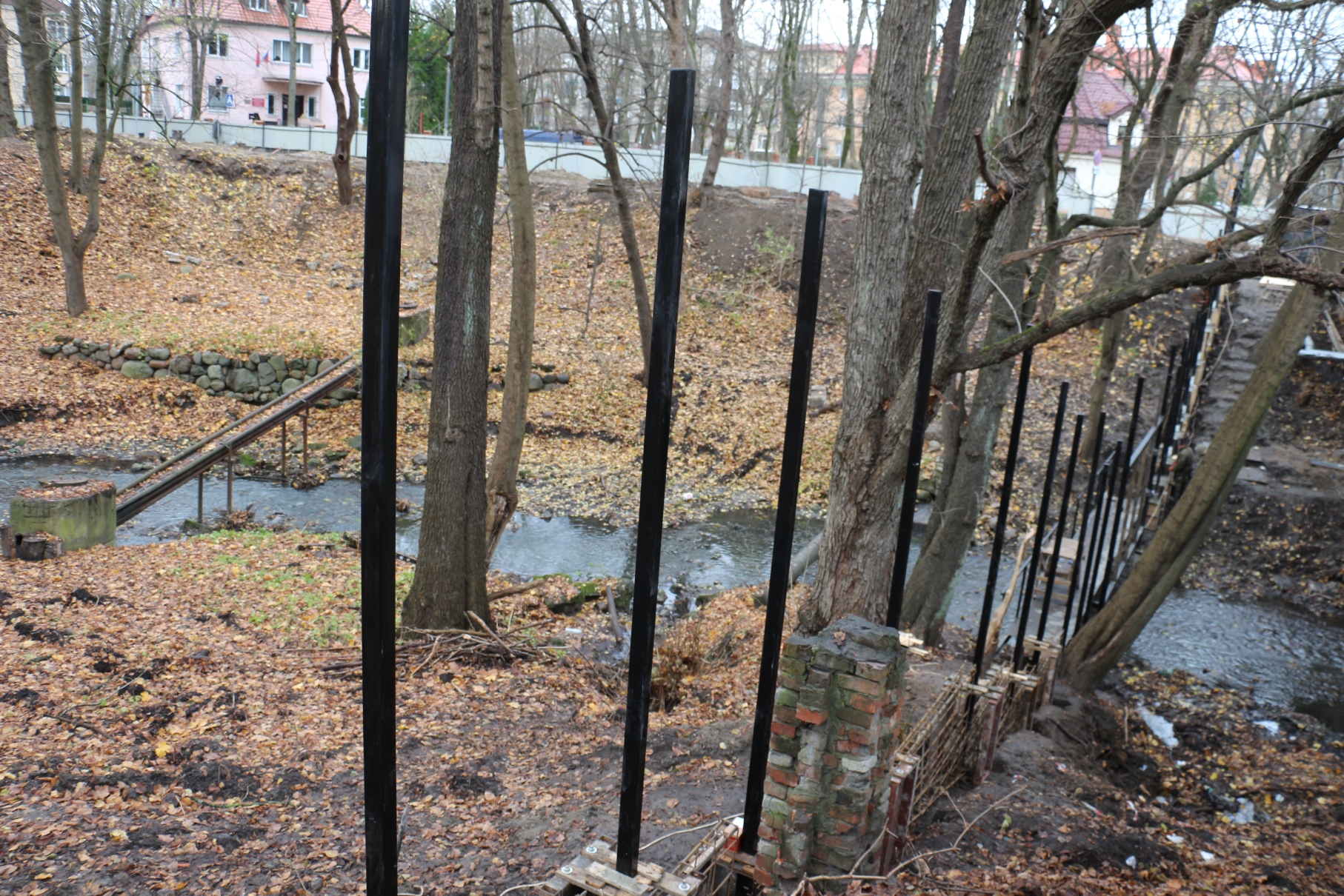 Территория в районе улицы Брамса скоро превратится в прогулочную зону. Такую возможность дает грант, который выиграл Калининградский зоопарк в рамках приграничного сотрудничества. Работы, рассчитаны на 2020-2021 год и ведутся в несколько этапов. До конца декабря строители стремятся завершить устройство нового кирпичного ограждения со стороны ул. Шота Руставели. Также до конца года должно быть готово светопрозрачное ограждение вдоль моста Влюбленных по ул. Брамса, пересекающее ручей и соединяющее оба склона. Об этом рассказал сегодня, 4 декабря 2020 года, во время выездного совещания председатель КТРиС Артур Крупин, на которого поручением главы администрации Калининграда Еленой Дятловой возложена координация работ на этом объекте.