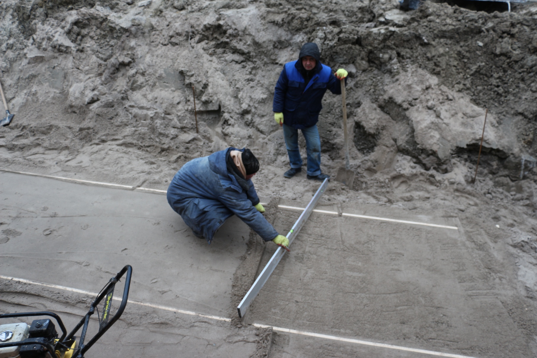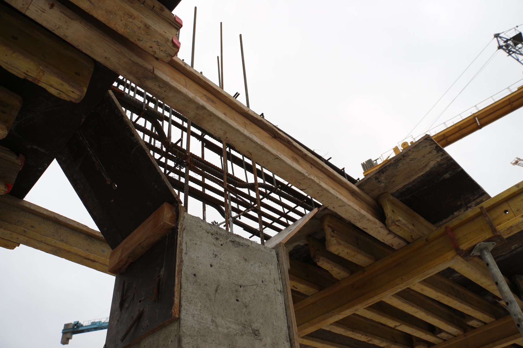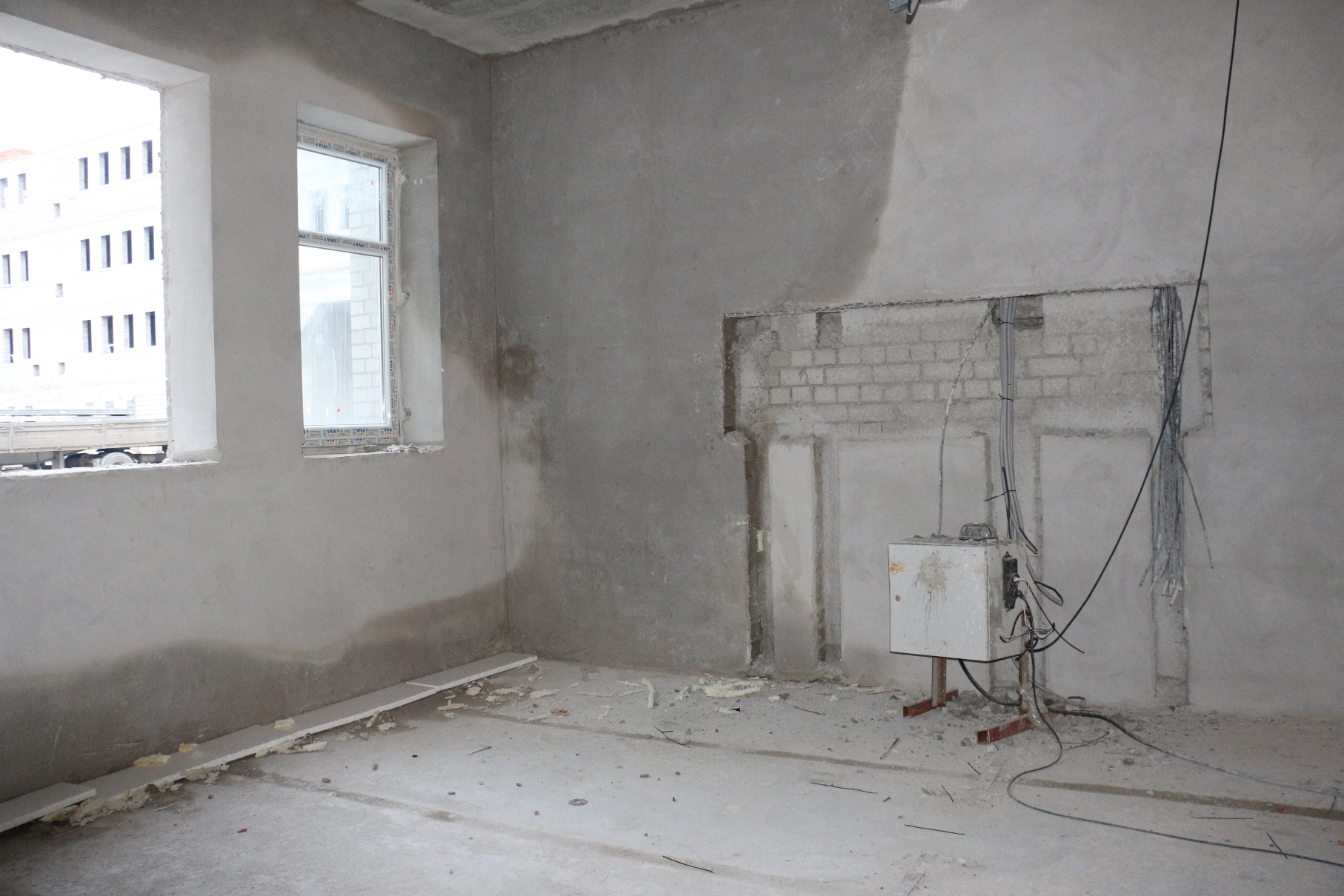 Генеральный подрядчик ООО СЗ «АК-СТРОЙ» приступил к работам на стройплощадке в апреле этого года. В ноябре у него были небольшие трудности на 1-м блоке, где у противорадиационного перекрытия достаточно сложная плита, армирование требовали большего приложения сил и времени. Сейчас плиту перекрытия между помещением противорадиационного укрытия (ПРУ) и верхней функциональной частью первого блока уже полностью залили. Сверху над укрытием будет располагаться пищеблок и обеденный зал, и здесь теперь тоже работы ведутся хорошими темпами.