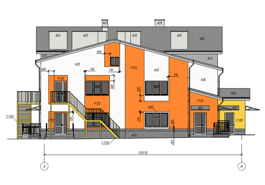 Главный вход в здание предусмотрен в одноэтажной части корпуса. С правой по фасаду стороны главного входа предусмотрена площадка для колясок, защищенная навесом от осадков.