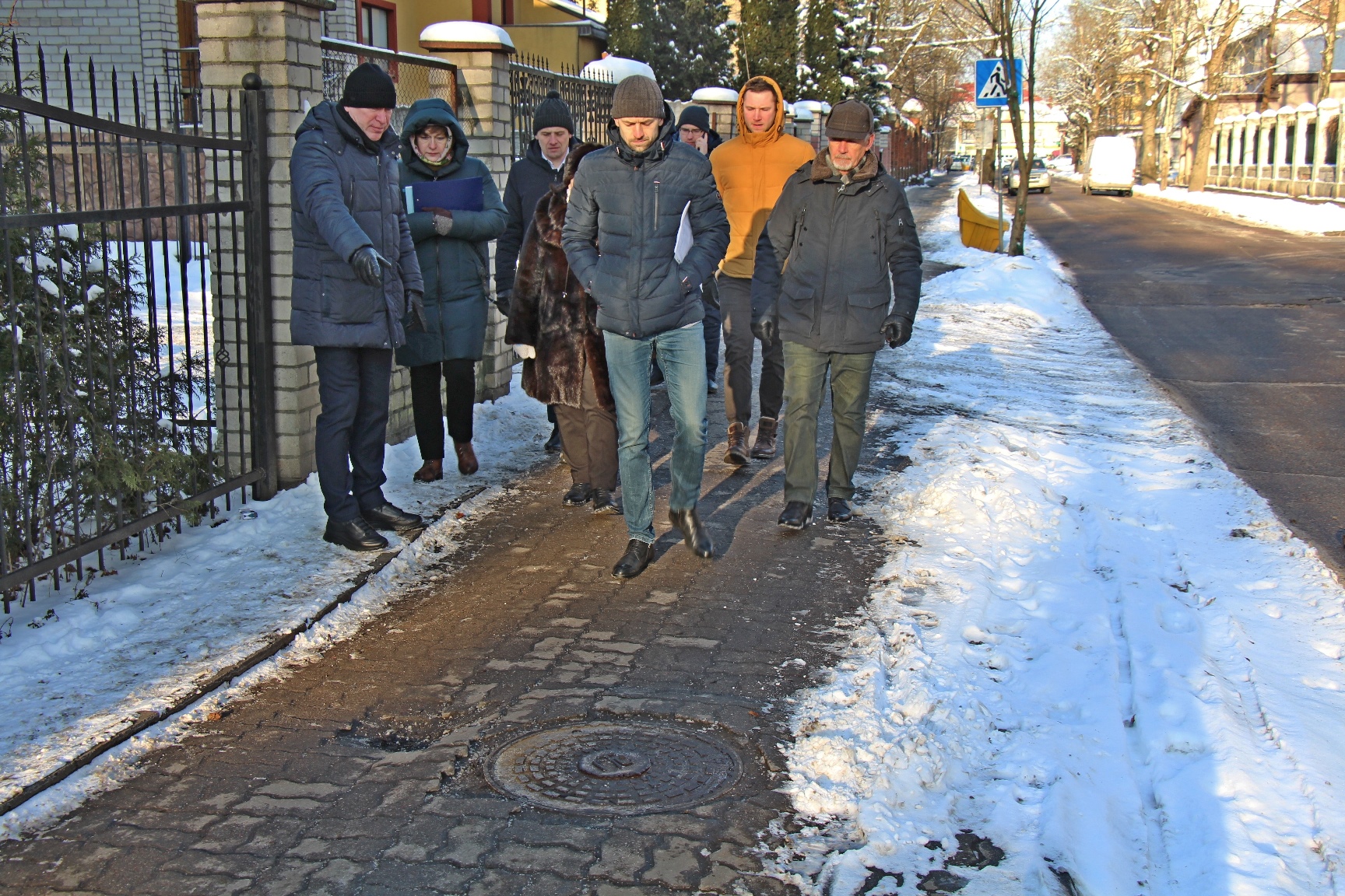 Участники выездного совещания, в числе которых представители комитета, МКУ «ГДСР», проектной и подрядной организаций, прошли с чертежами в руках по всей 600-метровой улице, отмечая проблемные места и участки, работы на которых предстоит согласовать и синхронизировать со смежниками.