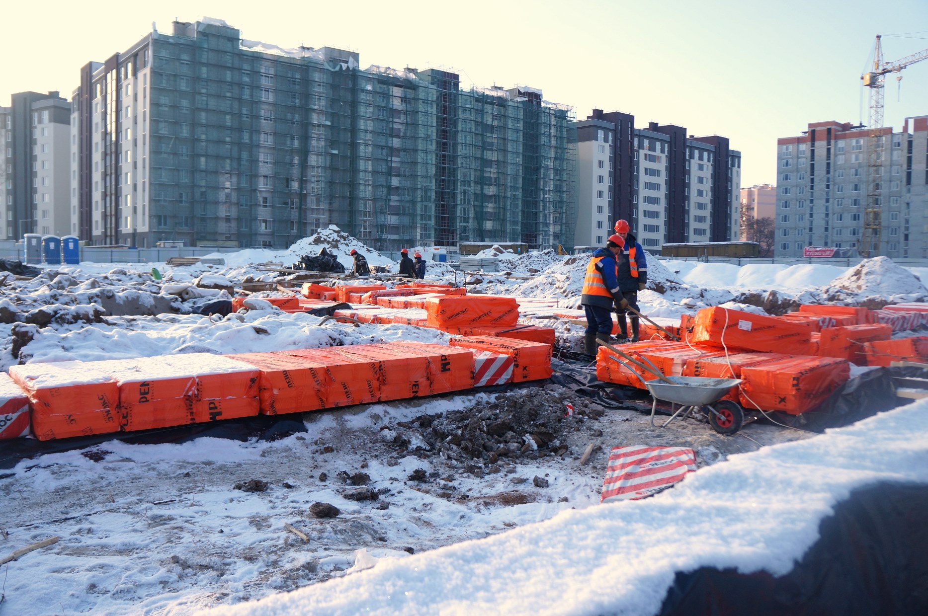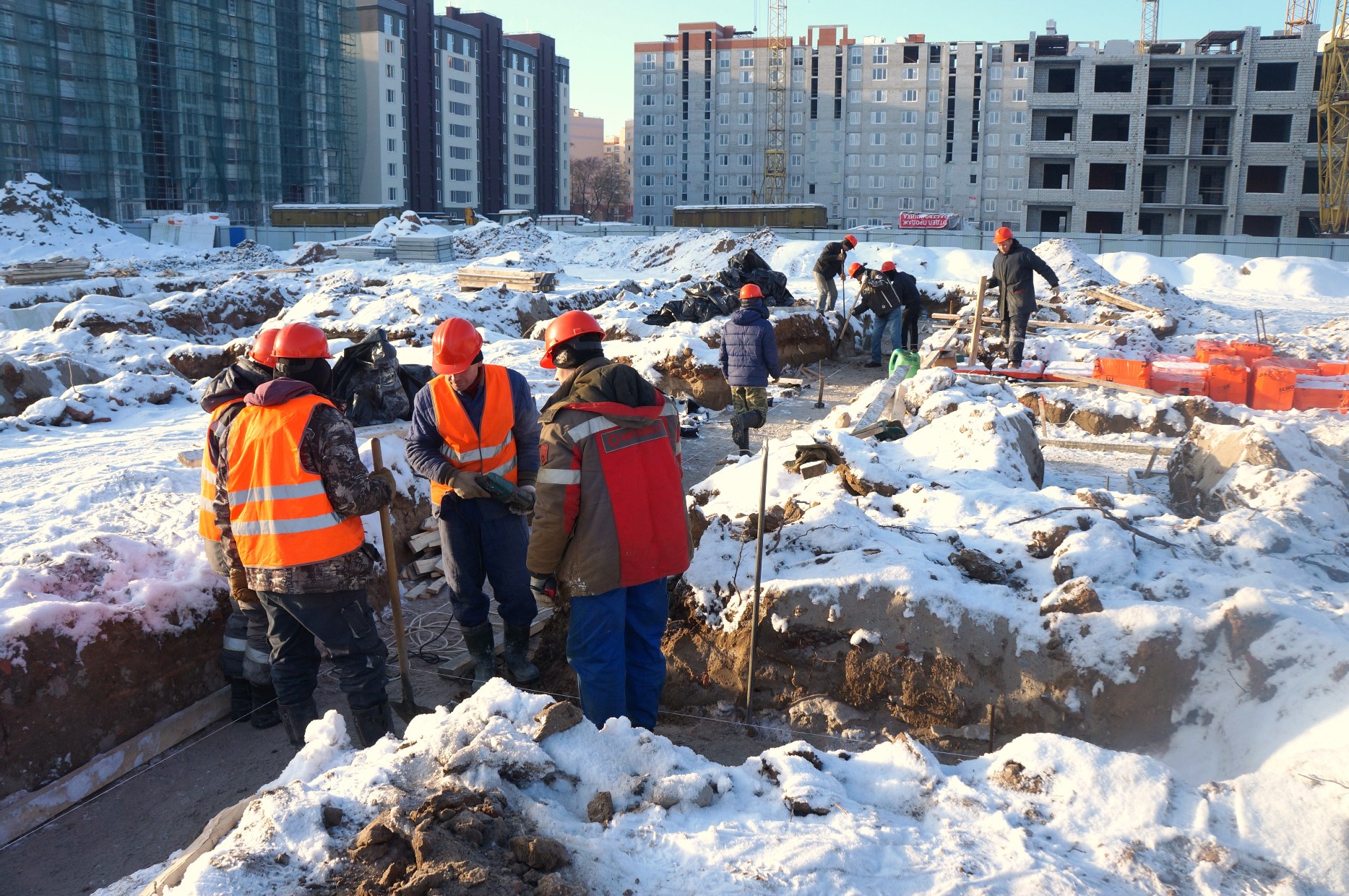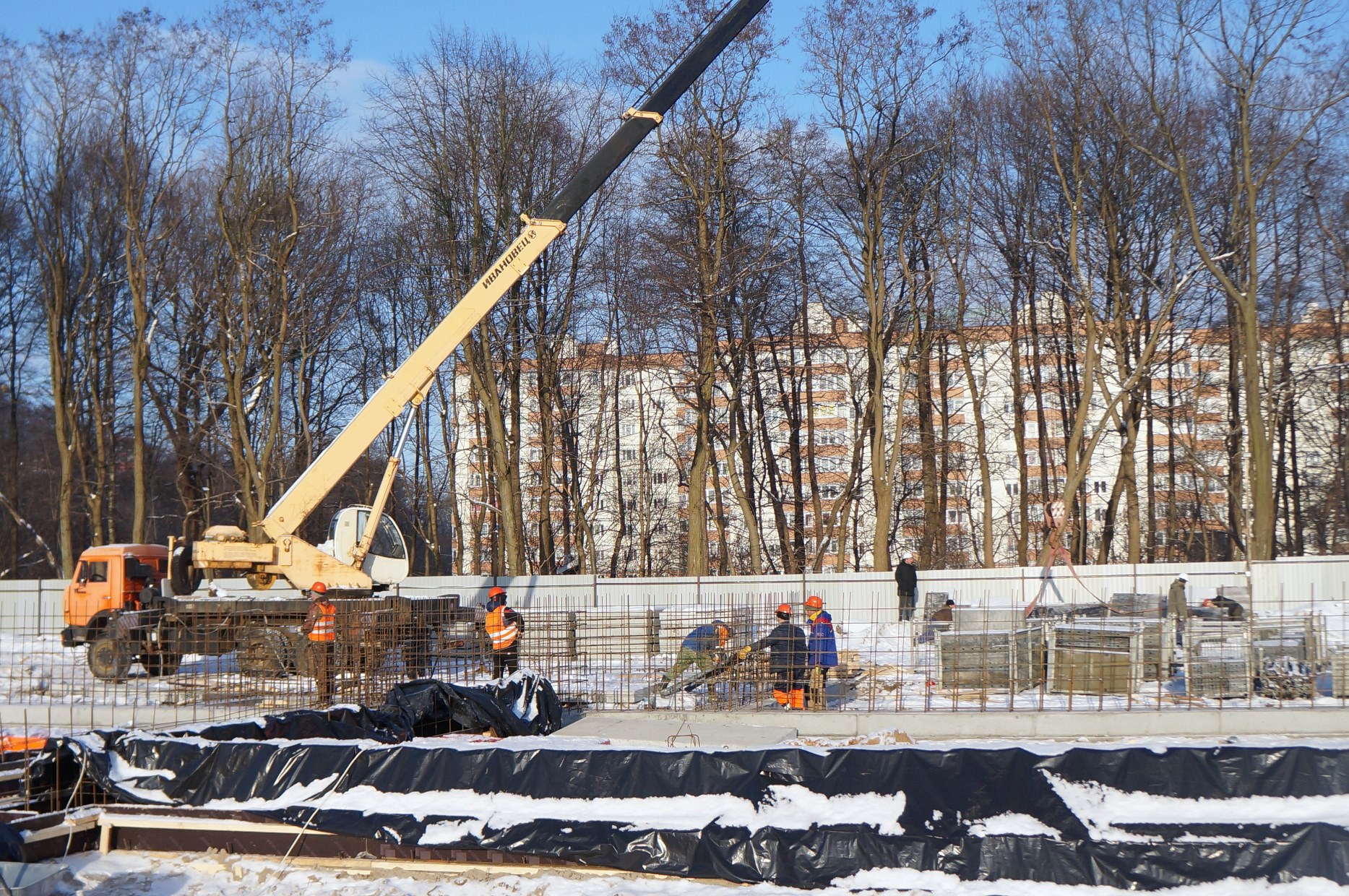 Рабочие заняты устройством каркасов под монолитный фундамент. Видеотрансляция строительства объекта ведется круглосуточно и доступна на сайте администрации. Об этом во время выездного совещания рассказал председатель КТРиС администрации Калининграда Артур Крупин.