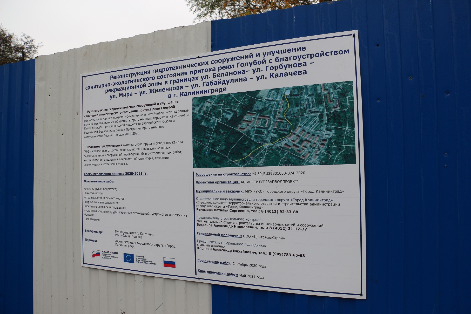 Сейчас в микрорайоне Чкаловск идет реконструкция гидротехнических сооружений притока реки Голубой, а вокруг него создается рекреационная зона. Делается это в рамках программы приграничного сотрудничества Польша-Россия 2014-2020. И уже этим летом микрорайон получит прекрасное место для отдыха.