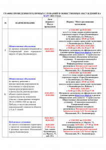 Информация по графику проведения публичных слушаний и общественных обсуждений на март 2021 года: