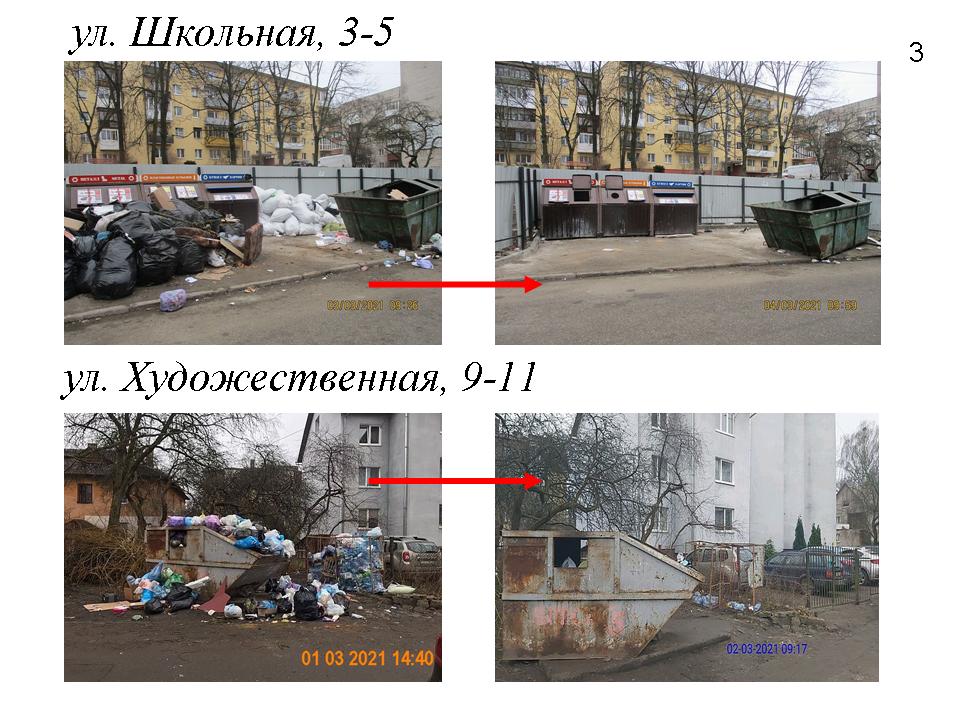 Проведено 457 выездов по контролю за соблюдением Правил благоустройства. Из них 196 мероприятий по контролю за санитарным состоянием контейнерных площадок. Направлено 57 обращений о принятии мер по их устранению: ненадлежащее санитарное состояние территорий, ненадлежащее техническое состояние фасадов зданий, ограждений, объектов коммунальной инфраструктуры, в том числе наличие граффити. Составлено 2 протокола об административных правонарушениях: 1 протокол в отношении юридического лица ООО «БалтАвтоЛайн» за ненадлежащее санитарное состояние земельного участка по ул. Рыбников, 15; 1 протокол в отношении юридического лица ООО «СК «Логос Строй» за изменение части фасада без внесения соответствующих изменений в паспорт фасада многоквартирного дома № 93 по Ленинскому пр.
