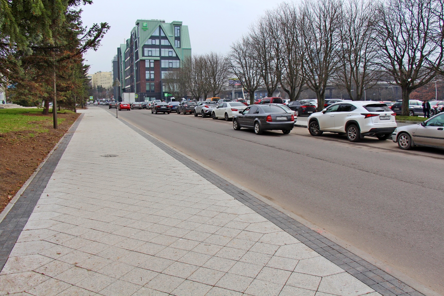 Дорожники расширили пешеходную части улиц за счёт сужения ненормативной проезжей части, обустроили велосипедные дорожки и дополнительные парковочные места.
