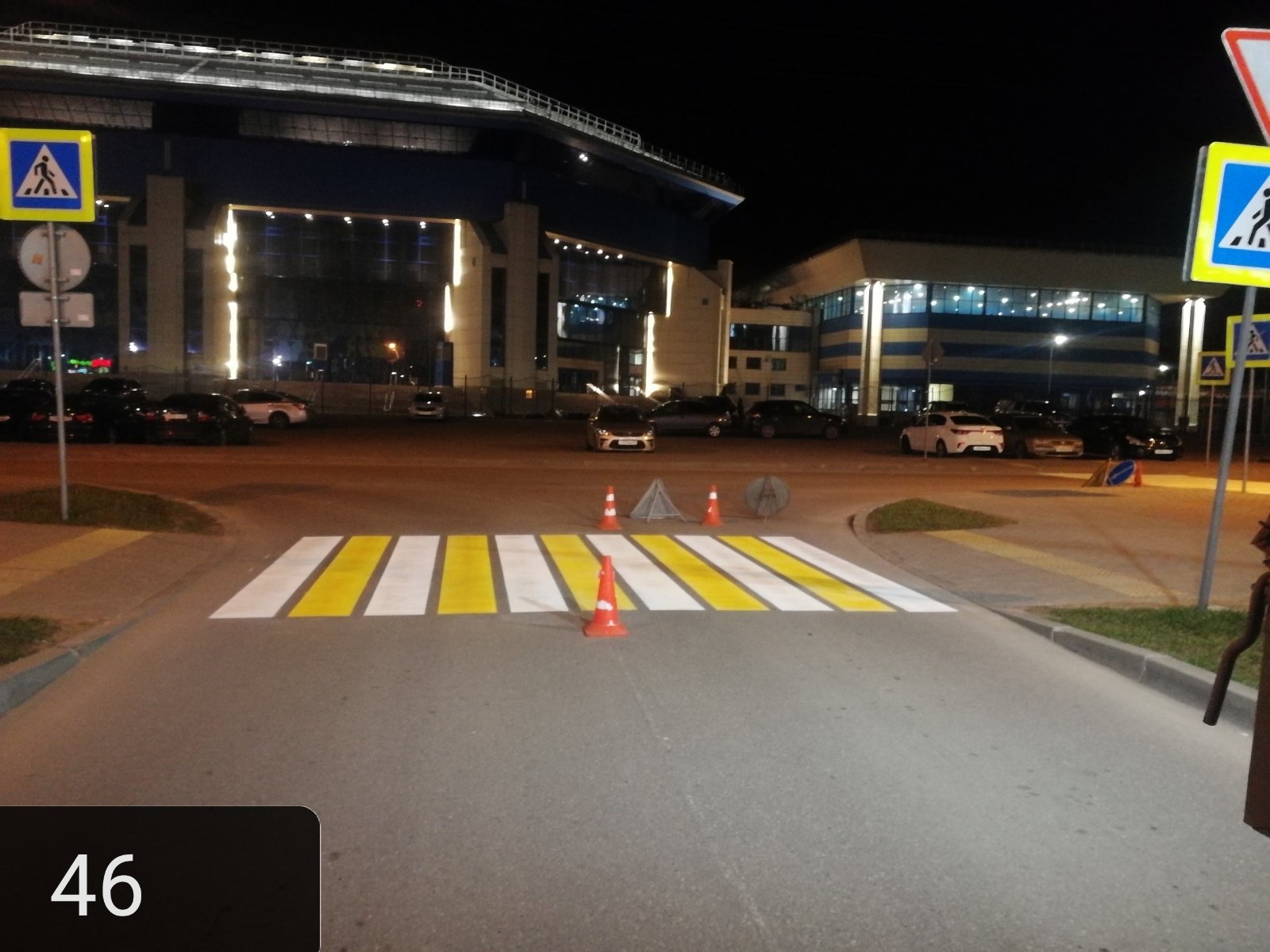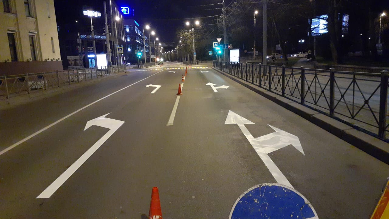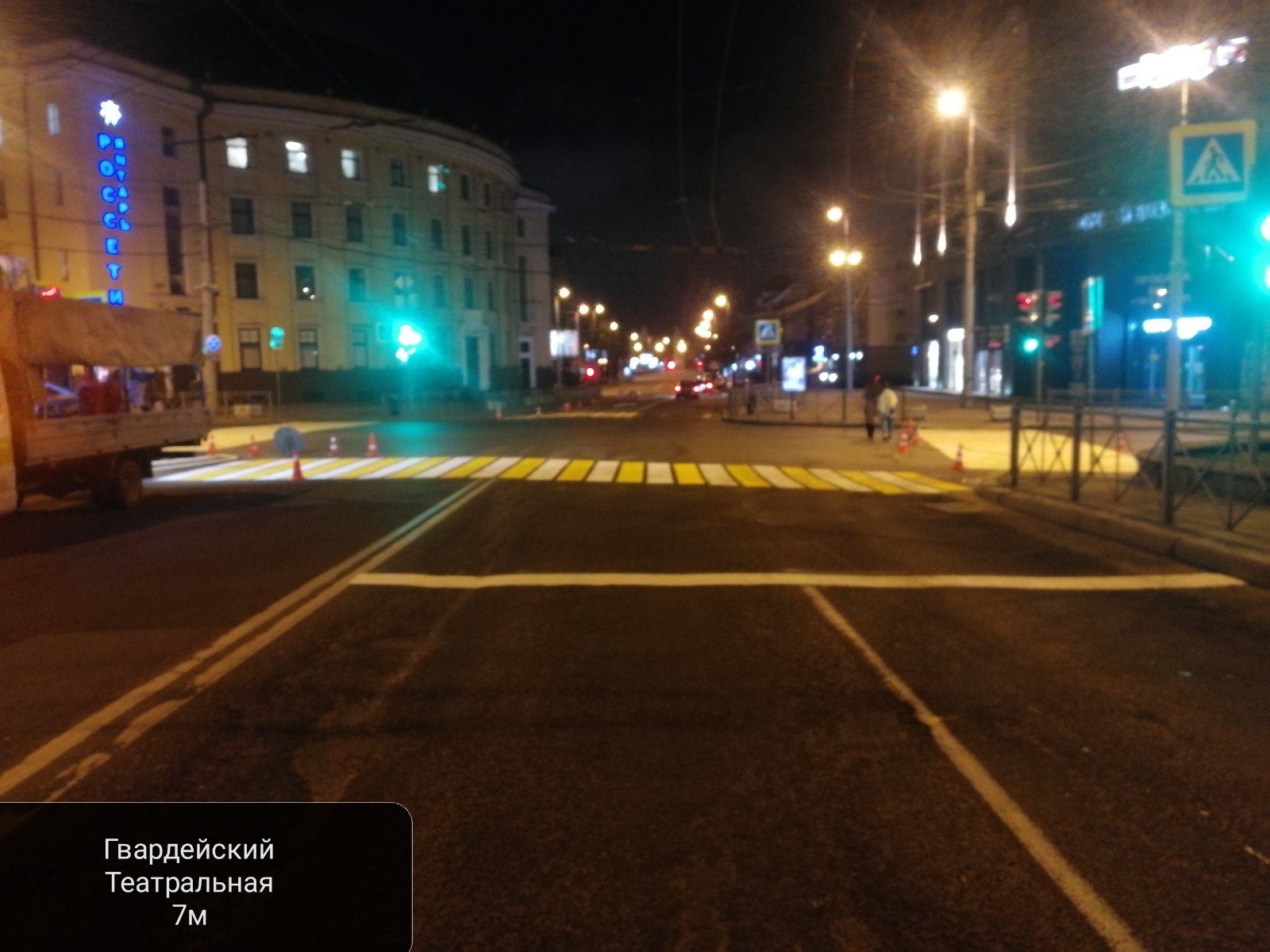В ночь на субботу дорожники нанесли новую разметку по Гвардейскому проспекту и улице Генерал-фельдмаршала Румянцева.