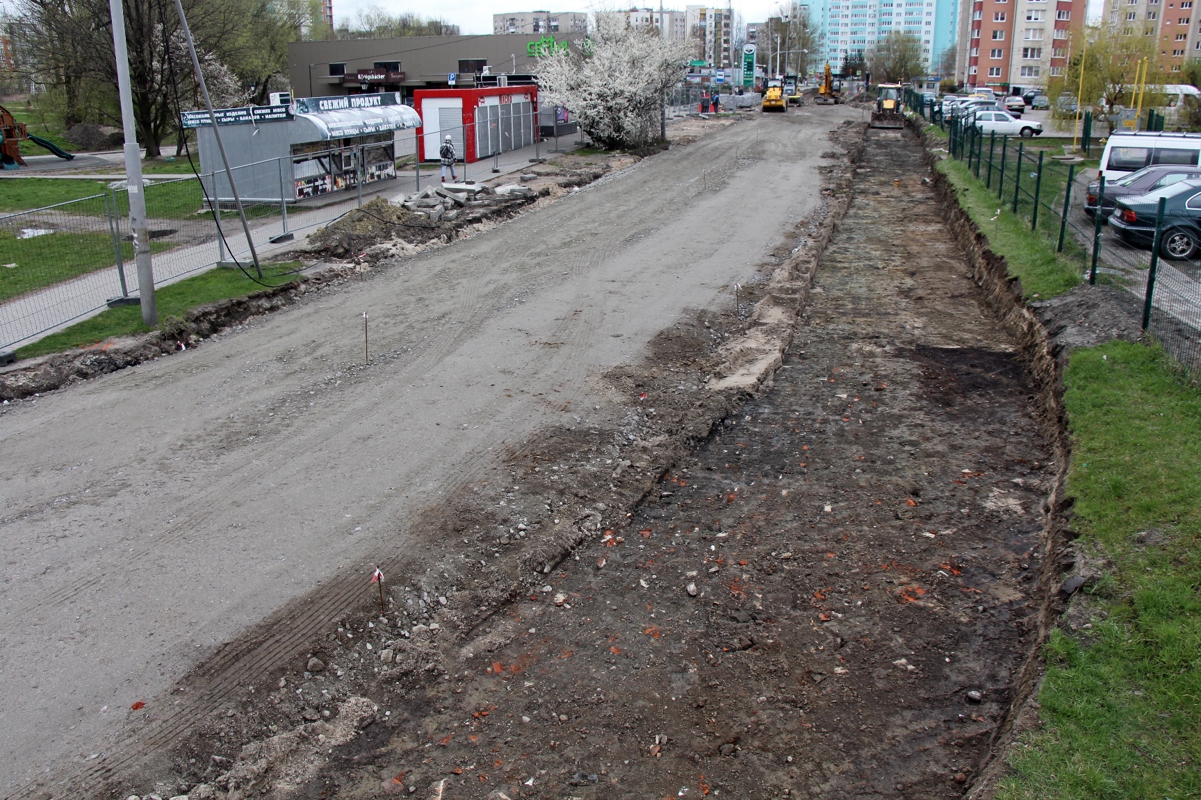 На Автомобильной строительная техника задействована на подготовке щебёночного слоя на первом этапе, где предварительно переложили сети, и устройстве песчаной подушки – на втором.