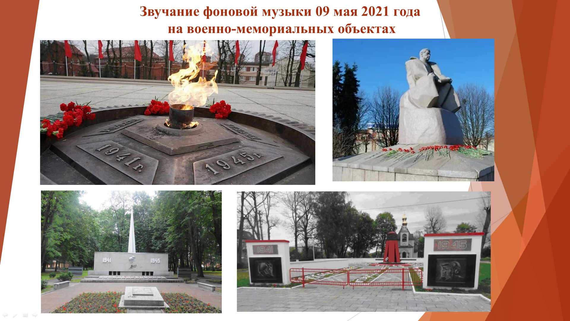 На постоянном контроле находятся вопросы состояния и благоустройства военно-мемориальных объектов. По поручению главы администрации к 9 мая, приведены в порядок все 59 военно-мемориальных объектов, расположенных на территории городского округа. На сегодняшний день завершены работы по оформлению территорий, общественного транспорта, что создает атмосферу праздника у горожан и гостей нашего региона.