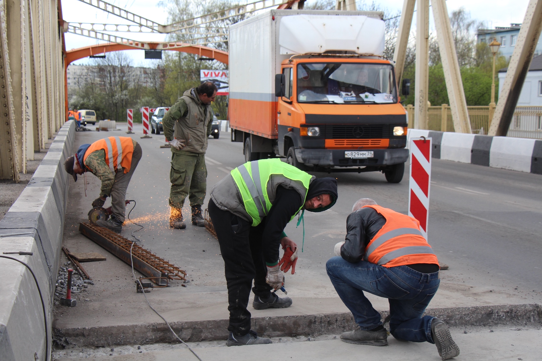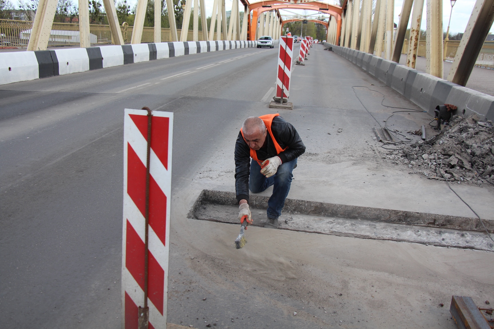 На правой полосе путепровода на ул. Киевской вскрывают пятый деформационный шов.