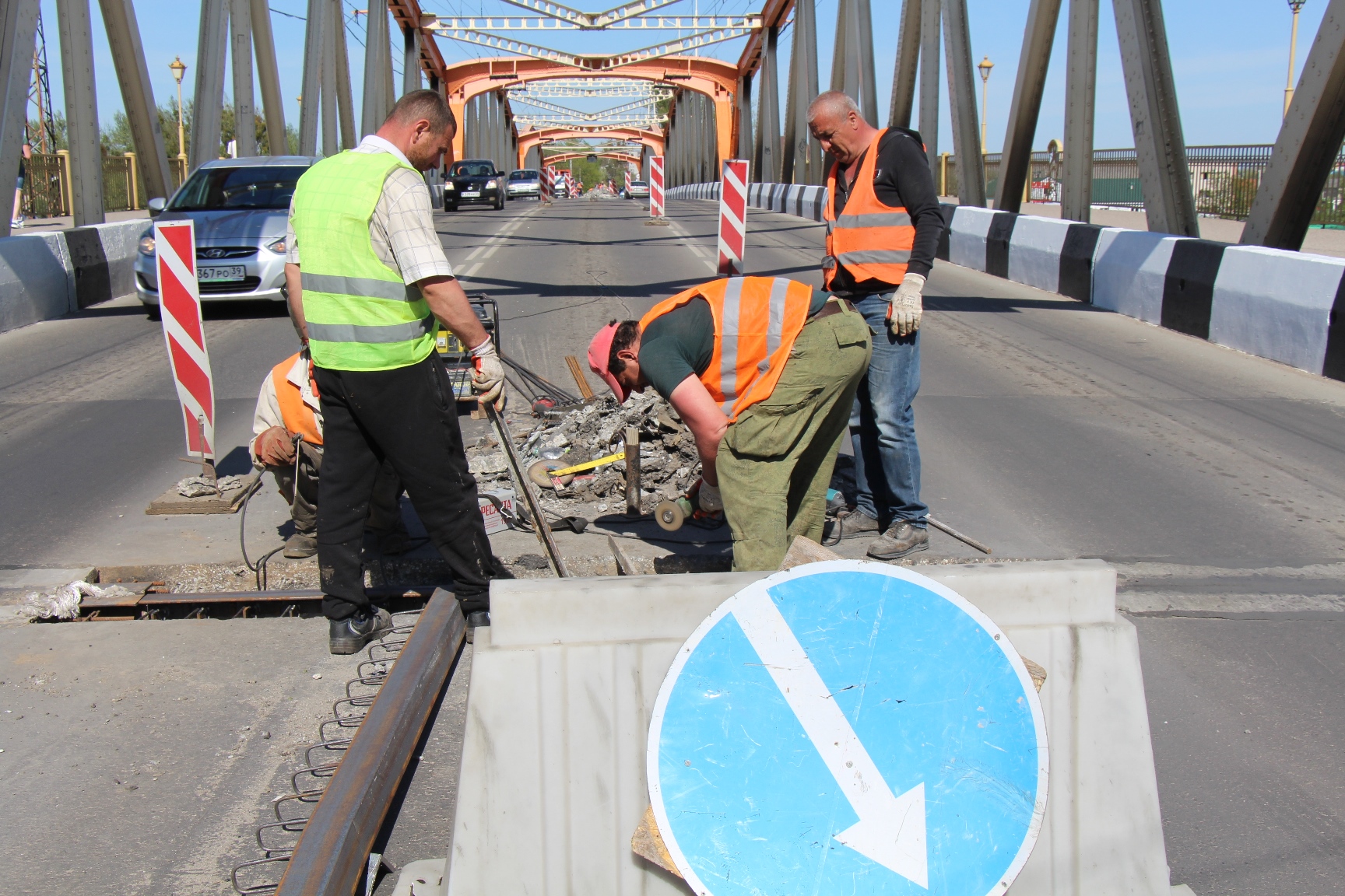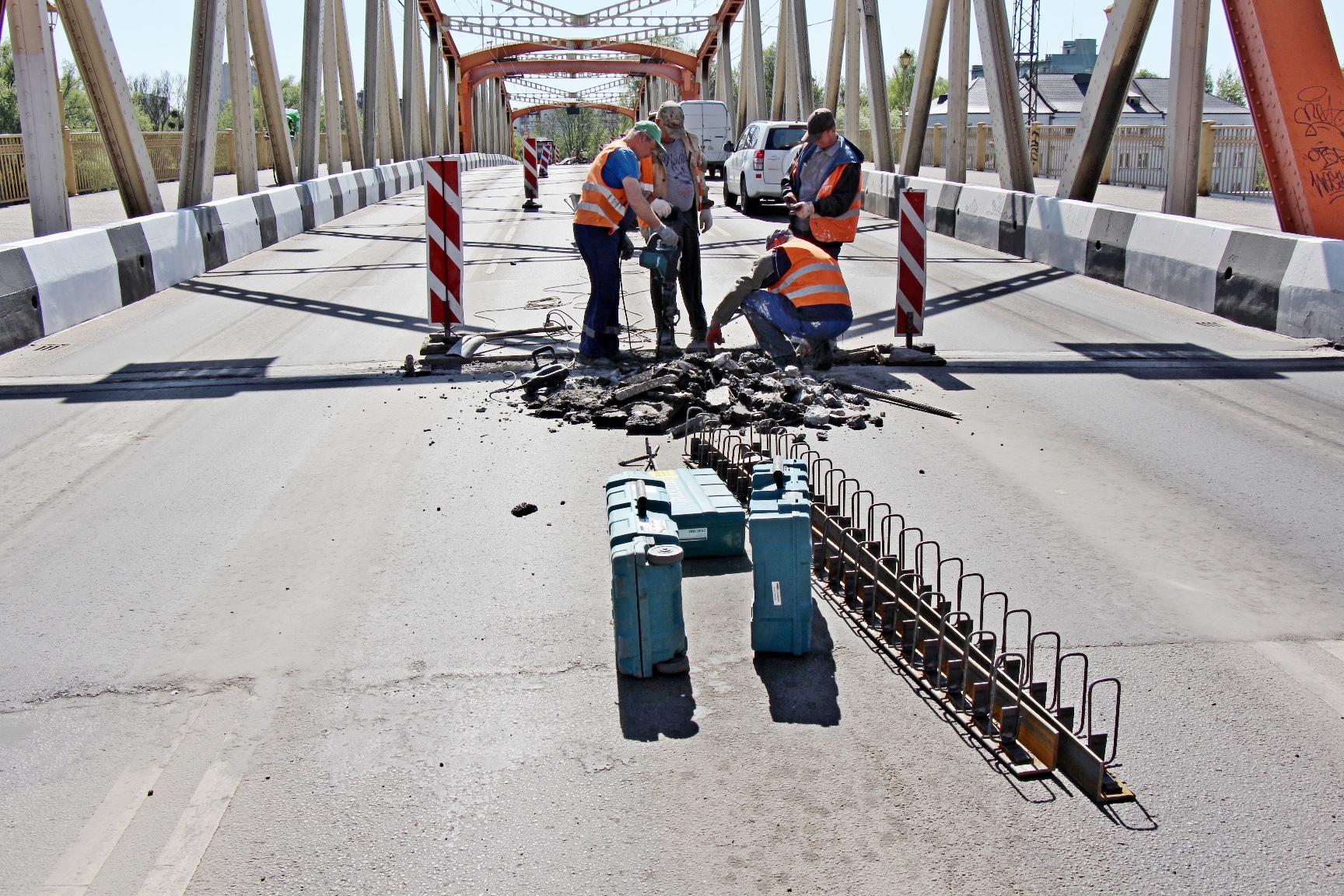 За сутки с момента перекрытия движения по средней полосе путепровода по ул. Киевской мостовики вскрыли и подготовили три шва из пяти.