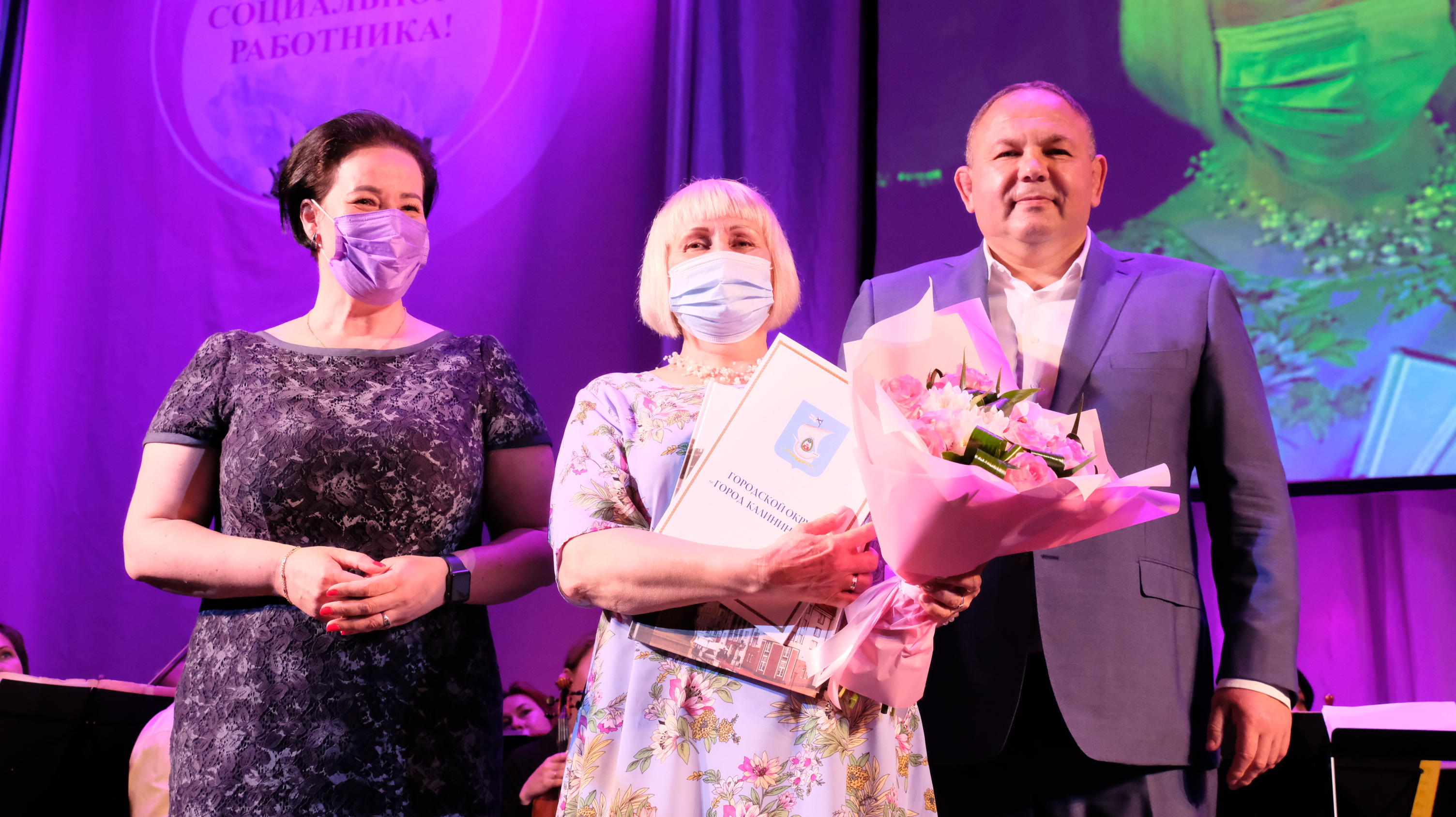 Лучшим социальным работникам Калининграда Елена Дятлова и Андрей Шумилин вручили почетные грамоты, благодарности, благодарственные письма администрации городского округа, а также памятные подарки, приуроченные к юбилею Калининградской области – книги Андрея Кропоткина «Легенды Янтарного края» и «Регион 39». Всего 11 человек, в числе которых: Оксана Никишина - специалист по социальной работе службы социального обслуживания на дому комплексного центра социального обслуживания населения в Калининграде; Светлана Добикова - социальный работник РАНО «Социальная служба «Рука помощи» и другие работники социальной сферы.