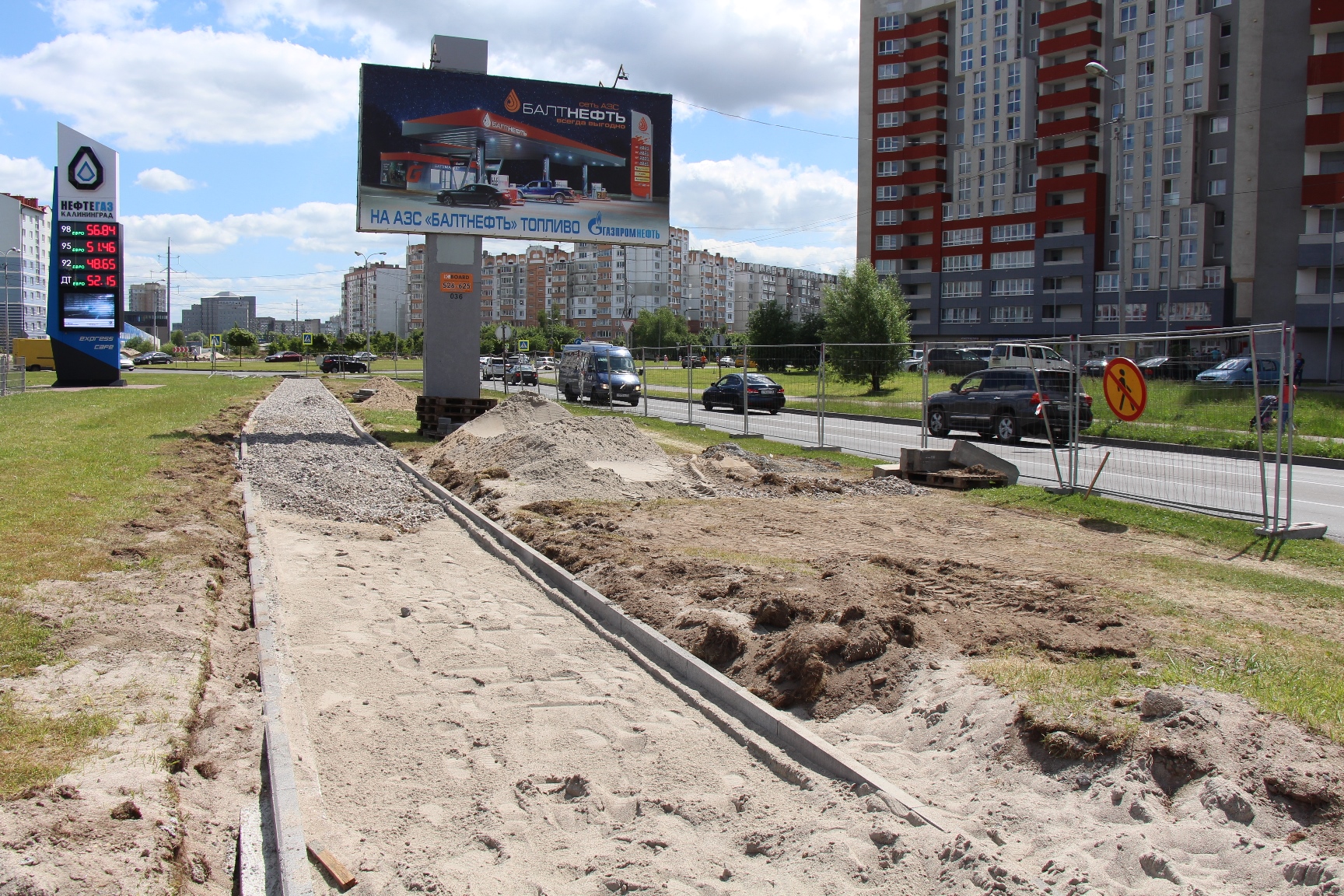 Почти полкилометра – протяжённость нового тротуара на ул. Елизаветинской. Дорожники начали с велодорожки, рядом проляжет тротуар, а на улице появятся два заездных кармана для общественного транспорта и понижения бортового камня на пешеходных переходах.