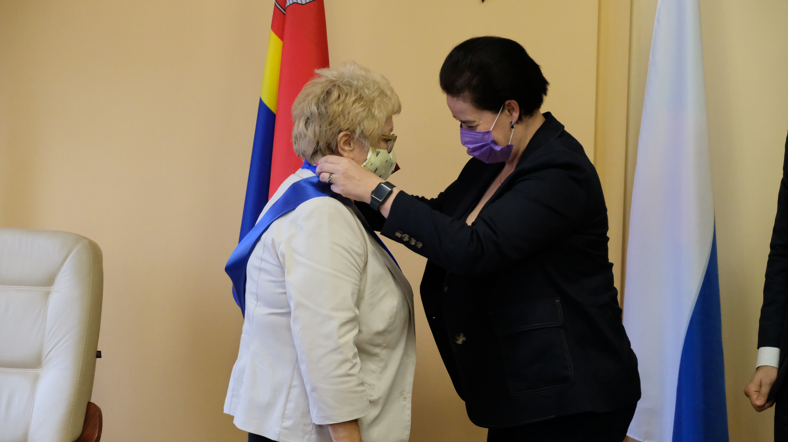 Андрей Кропоткин и Елена Дятлова под аплодисменты вручили Марии Биденко и Елене Александронец знаки отличия.