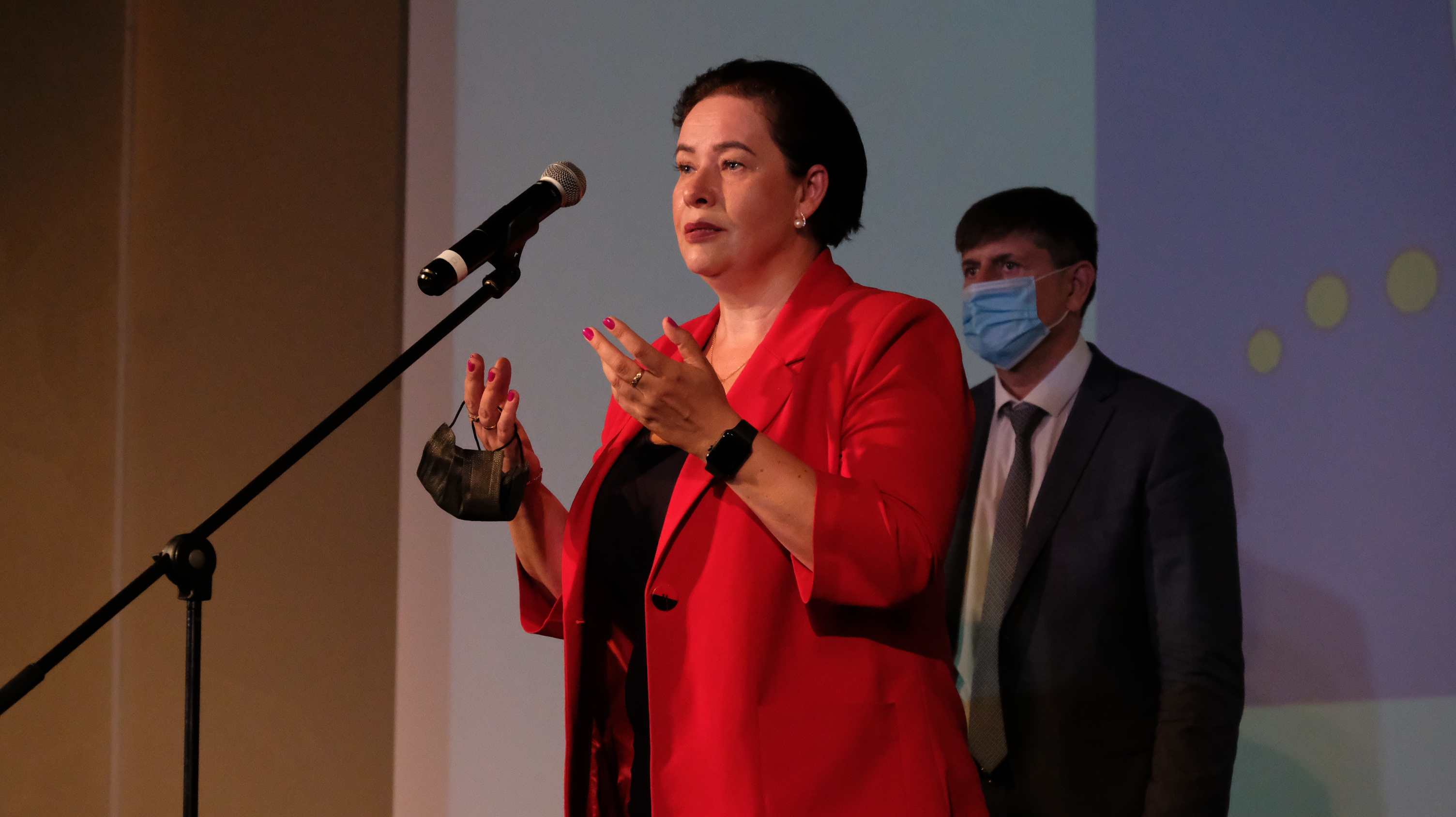 Затем вместе с главой Калининграда Андреем Кропоткиным она поздравила победителей.
