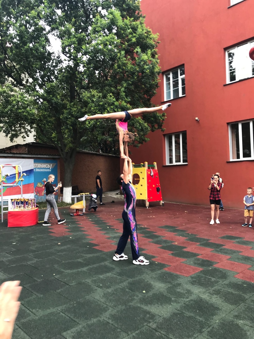 С показательными номерами выступали спортивные гимнасты и спортивные акробаты, разминку со всеми участниками провела тренер городской школы по спортивной гимнастике Кристина Логвин.
