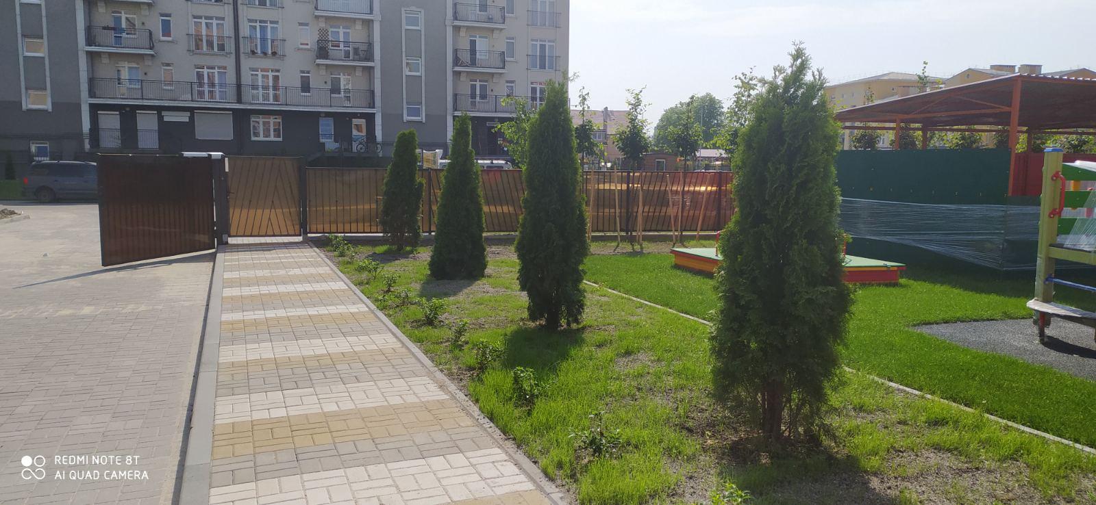 Также был произведён посев газонов.