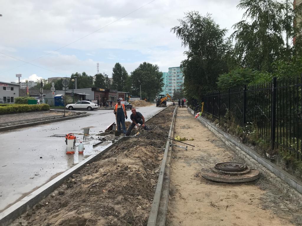 На ул. Артиллерийской готовят основание пешеходных дорожек и парковочных мест вокруг школы-новостройки. Оборудуют парковку и возле строящегося детсада на Новгородской. Завершён капремонт подъезда к дому №101 по ул. Гагарина, начались земляные работы на проезде и парковочных местах вдоль дома №28-44 по ул. Фрунзе.