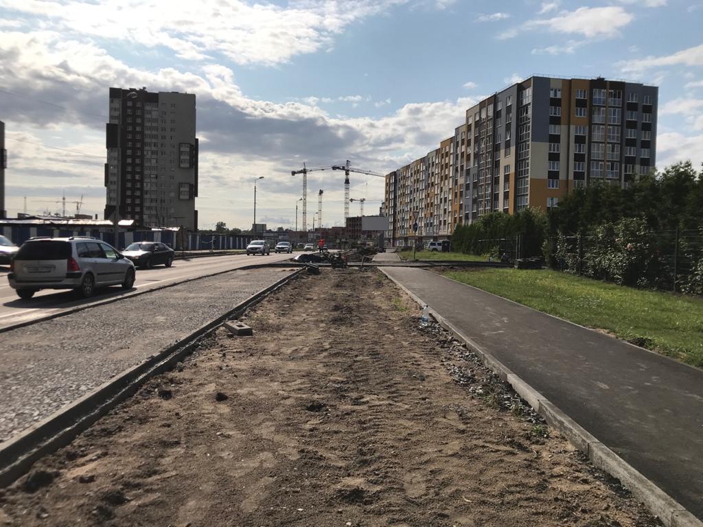 Прокладка велосипедной дорожки на ул. Елизаветинской завершена, дорожники ведут работы по устройству тротуаров и заездных карманов.