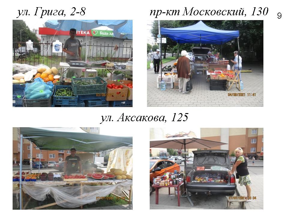 Специалистами комитета составлено 35 протоколов об административных правонарушениях за несанкционированную торговлю. По состоянию на 05.08.2021 мировыми судьями города рассмотрено 426 протоколов об административных правонарушениях. Общая сумма штрафов составила 1 831 000 рублей.