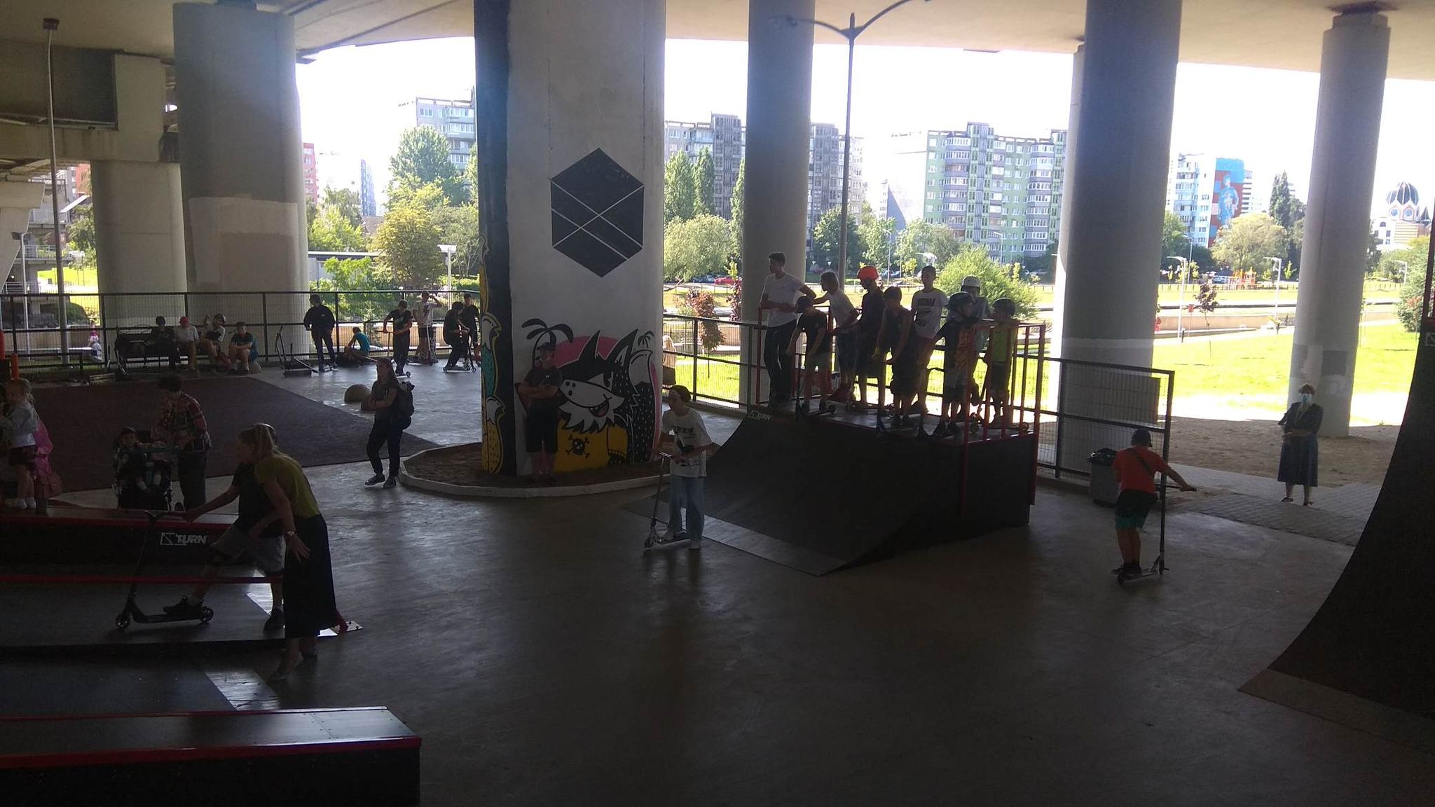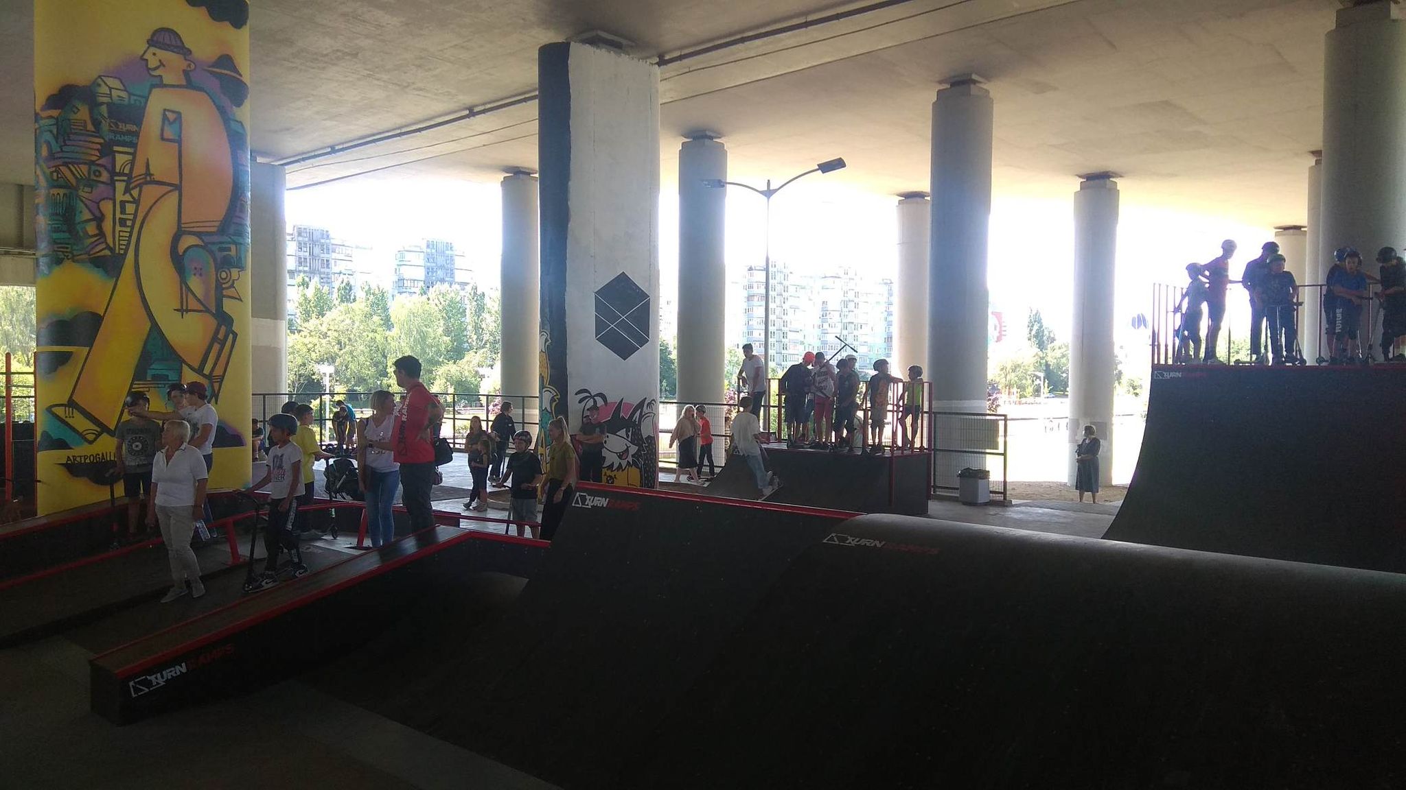 Специально для любителей экстремальных видов спорта под второй эстакадой сегодня был открыт скейт-парк.