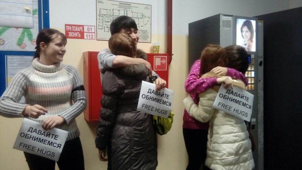 Не остались равнодушными и студенты. 13 января в Калининградском бизнес-колледже первокурсниками, активистами студенческого Совета и представителями Совета по молодежной политике при главе Калининграда был проведен флешмоб «Добрые слова». Молодые люди встречали всех студентов в холле колледжа и приветствовали их добрыми словами и дружескими объятьями.