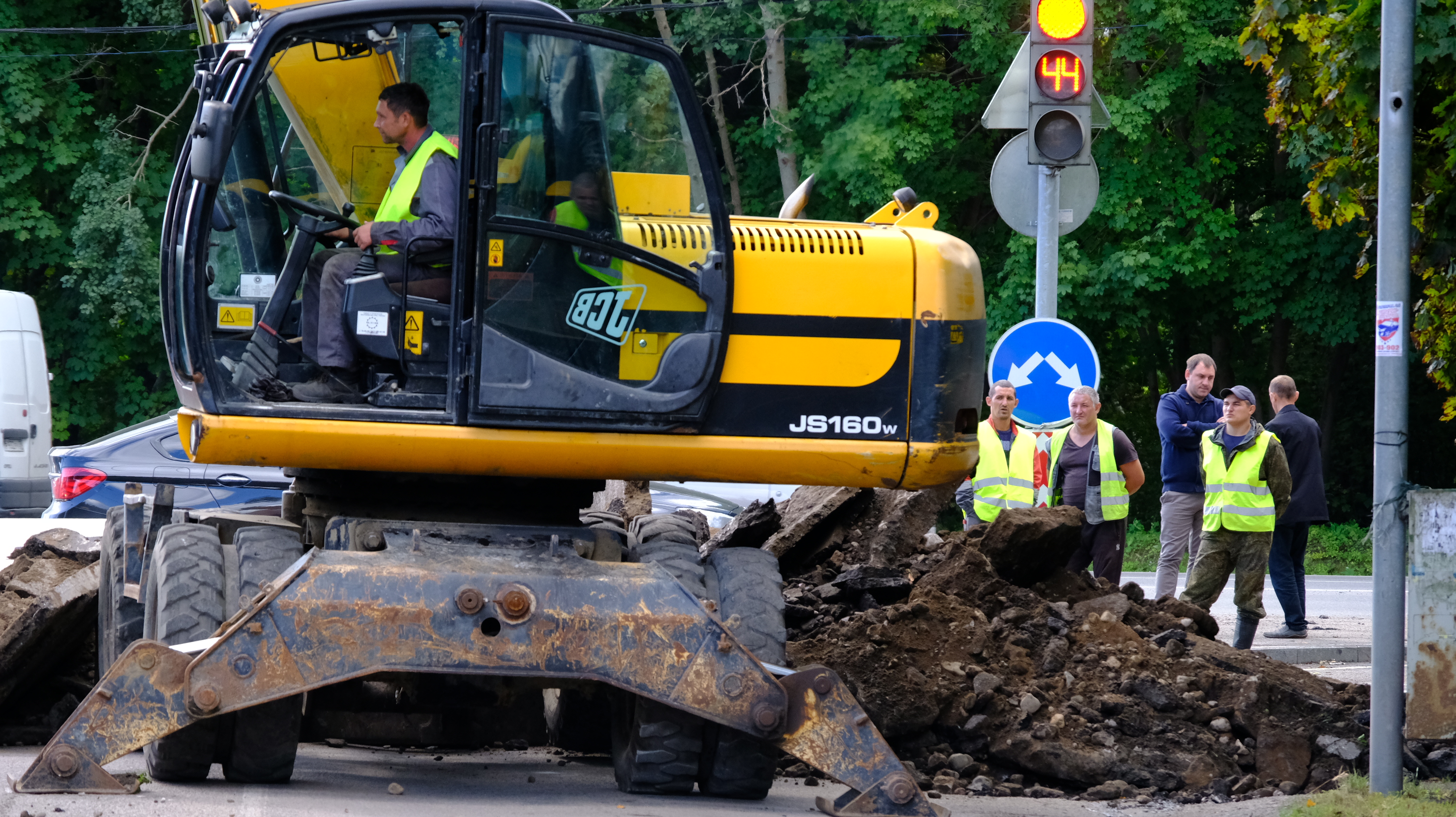В субботу на перекрёстке Спасателей - Балтийское шоссе должны также установить 8-метровые мачты с временными светофорами.