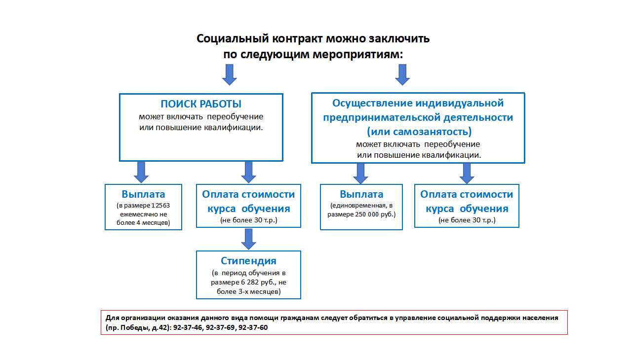 По вопросам заключения “социального контракта” нужно обращаться в Управление соцзащиты города, пр-т Победы, 42 (каб. №№ 25-41).