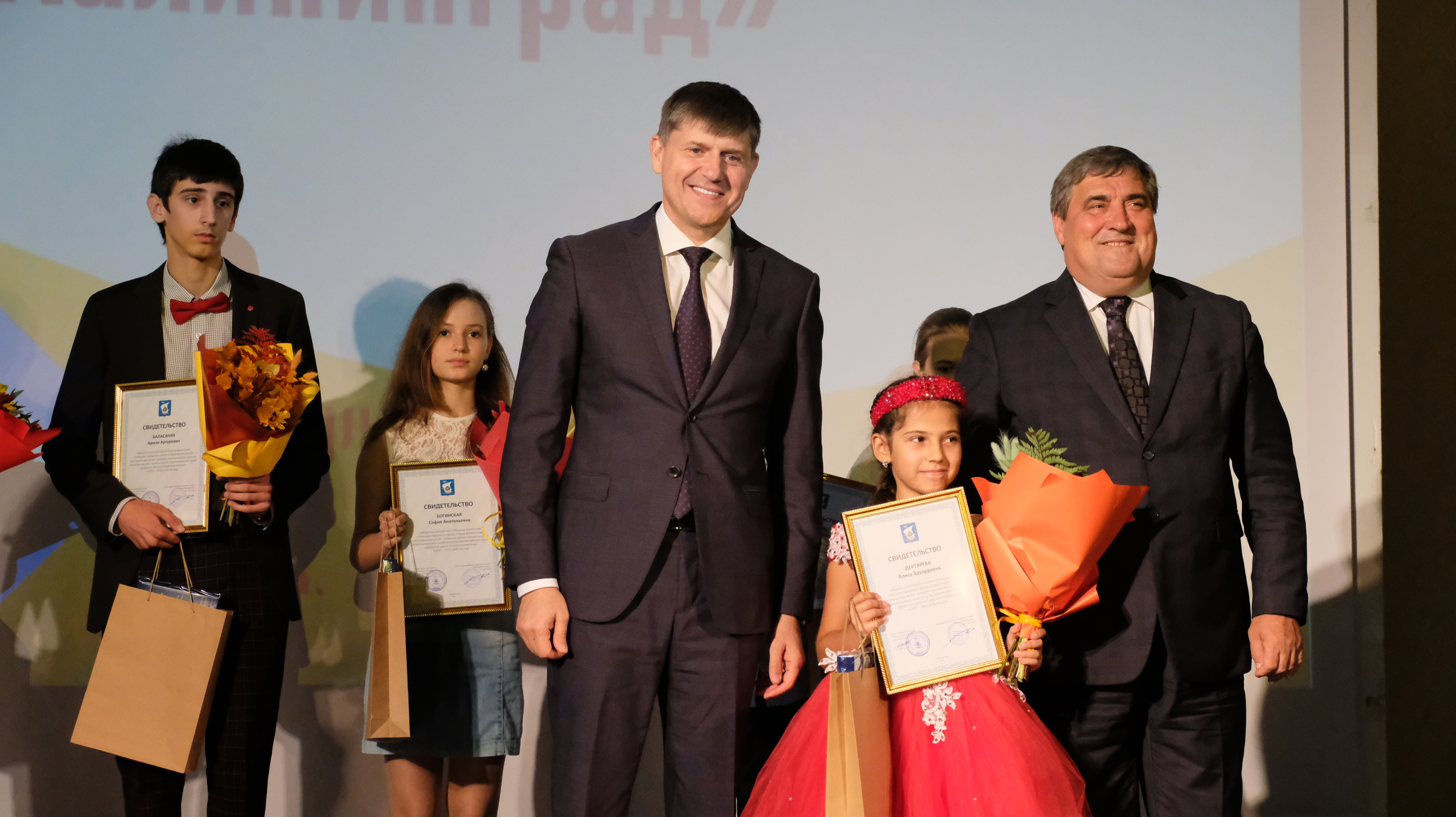 Юных дарований поздравили глава Калининграда Андрей Кропоткин, заместитель главы администрации областного центра, председатель комитета по социальной политике Алексей Силанов, педагоги и родители.