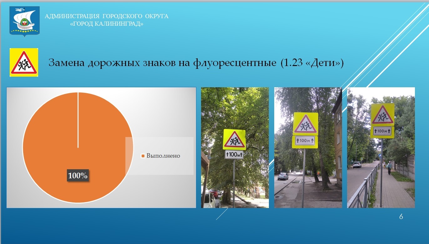 - в районе 45 учебных заведений - заменить дорожные знаки на флуоресцентные (1.23 «Дети»)