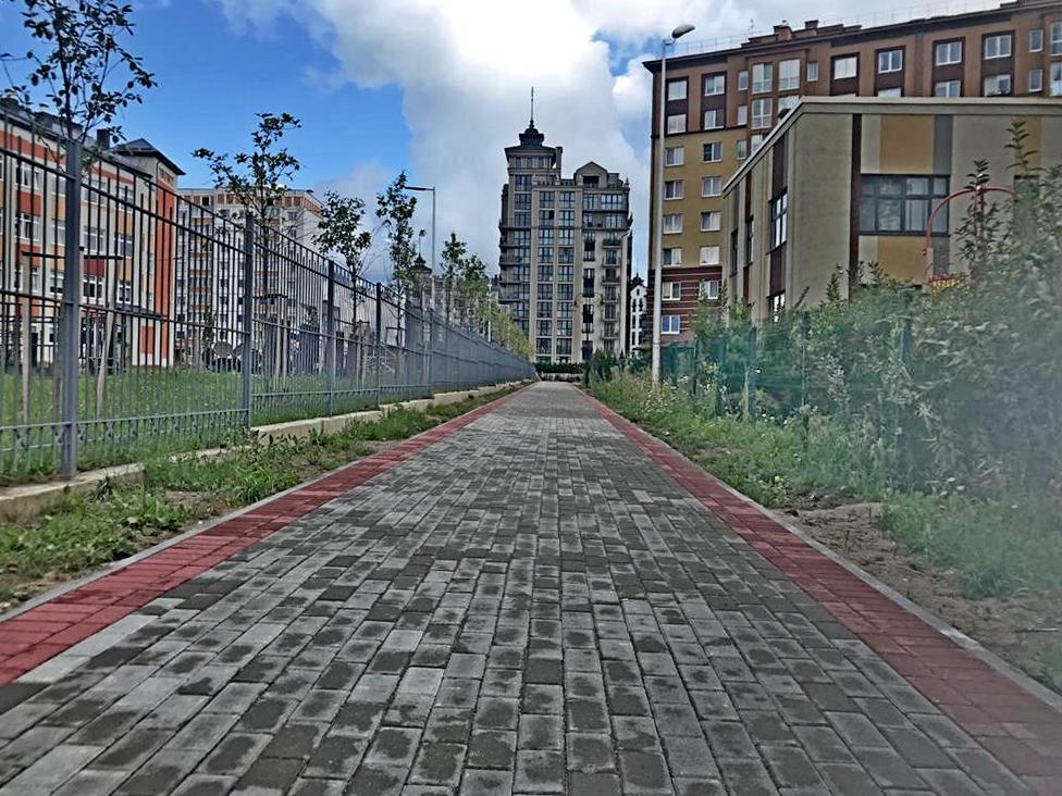 Завершено строительство пешеходных дорожек к открывшейся 1 сентября школе № 58 по ул. Артиллерийской.