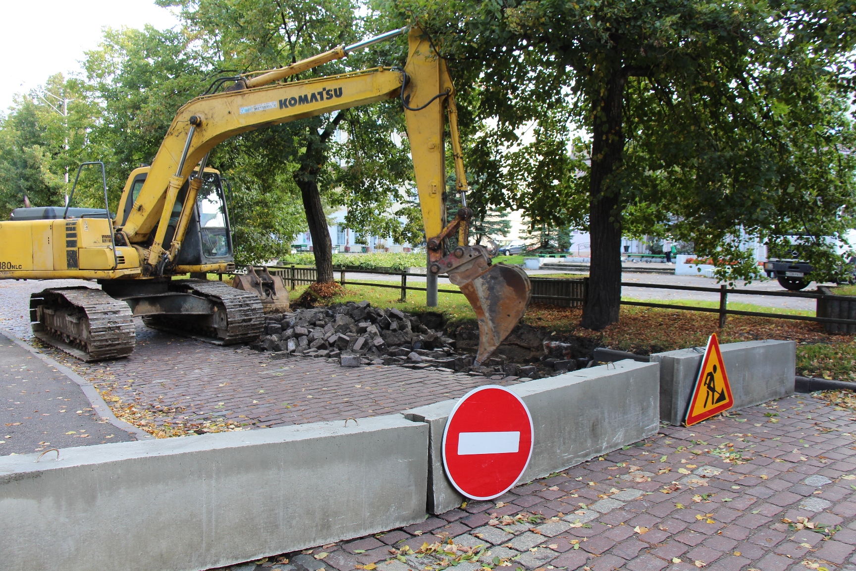 Работы начались и на противоположном конце улицы. В ночь с четверга на пятницу закрыли съезд с ул. Киевской и сразу приступили к демонтажу мостовой. Параллельно работам на проезжей части и тротуаре начнётся реконструкция сквера, парковки и пешеходной аллеи.
