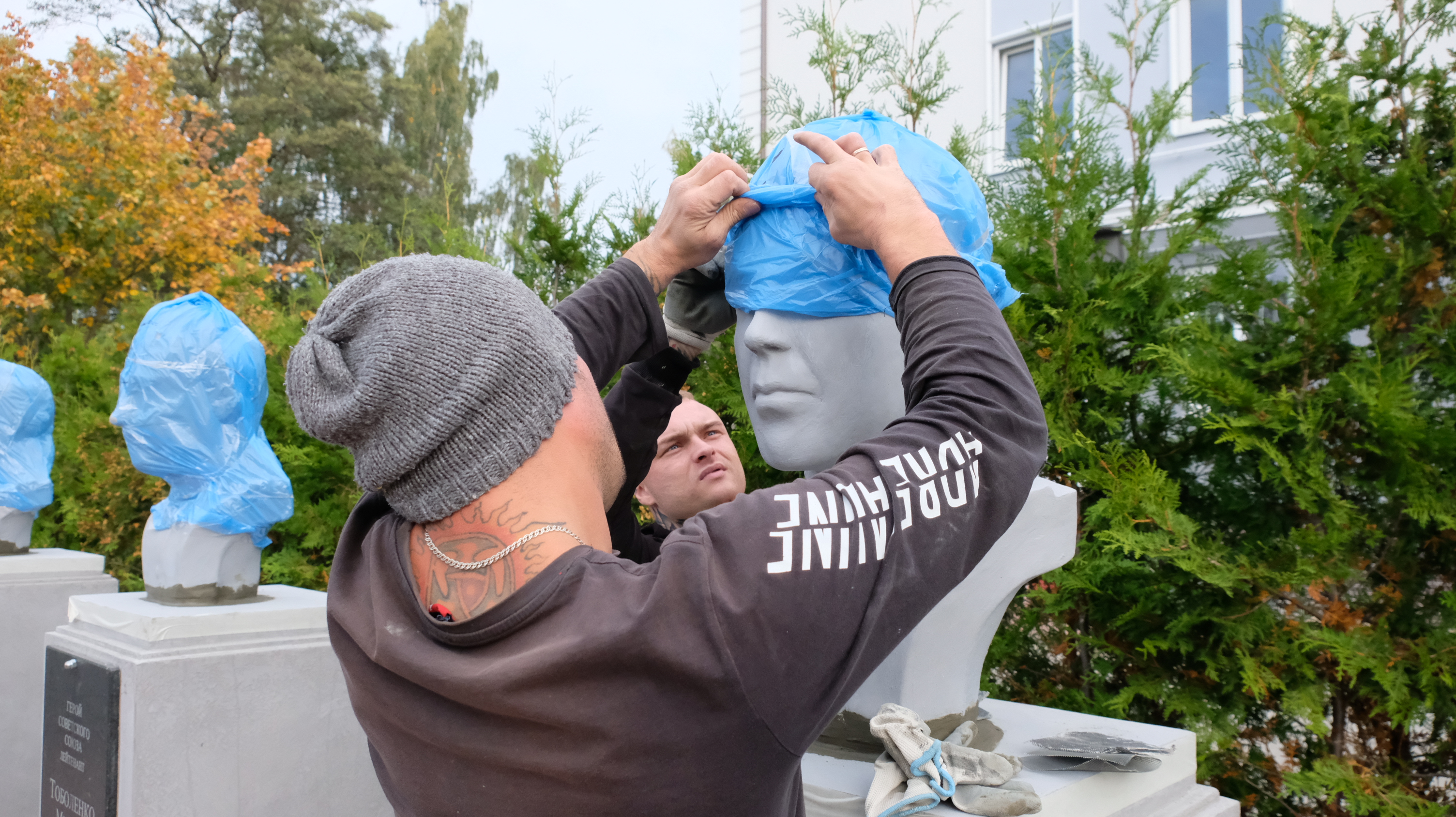 «Бюсты изготавливались по утверждённым 3D-моделям, которые делались на основе фотографий и воспоминаний их современников. Кстати, председатель местного ветеранского общества уже заходил с утра на объект, проверял работы. По крайней мере, пока ничего плохого не сказал», - говорит представитель ООО «Мириам».