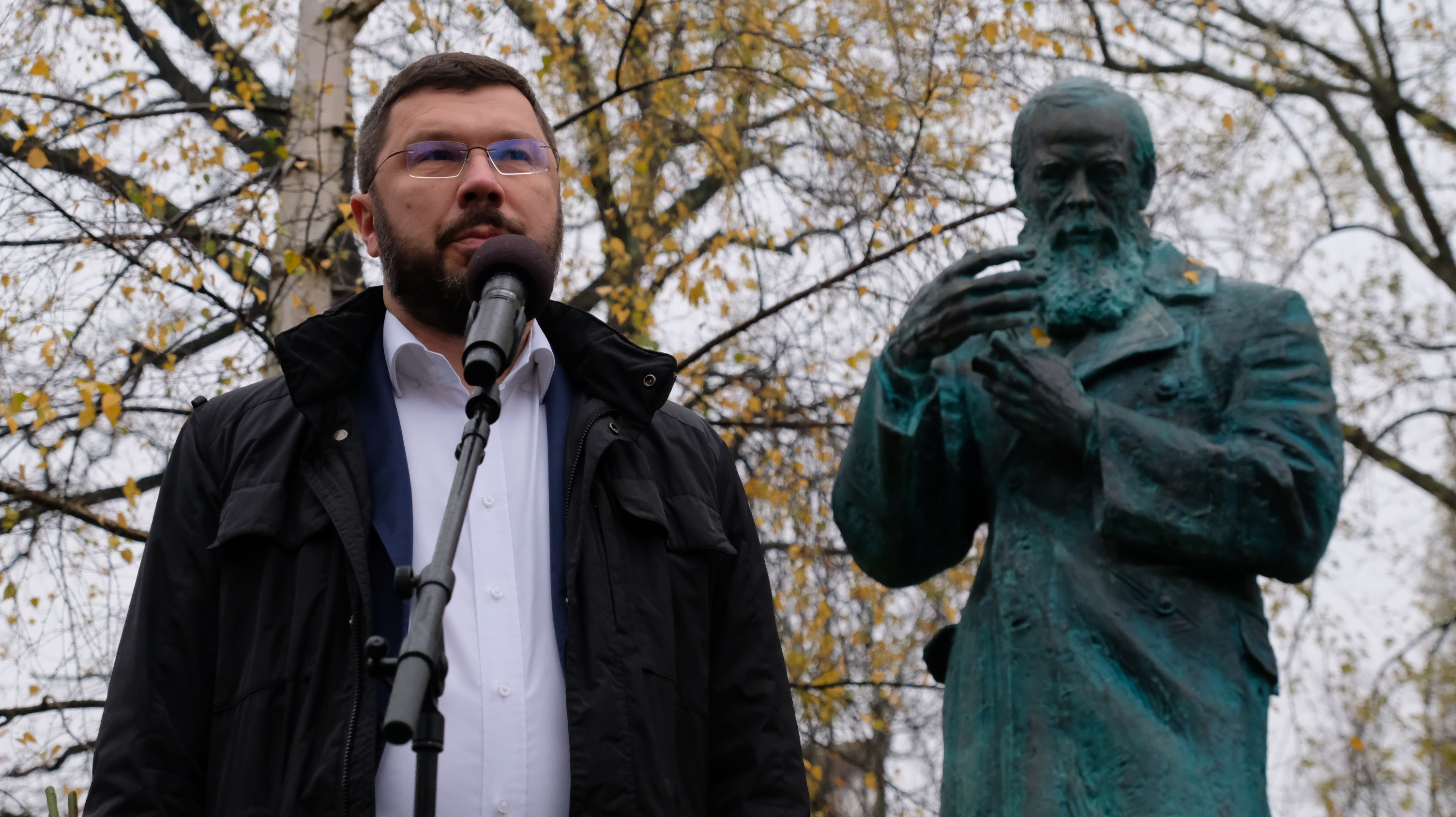 “Я очень рад, что сегодня, в день 200-летия со дня рождения Федора Михайловича Достоевского, именно у нас, на калининградской земле, открыт памятник писателю и сквер его имени. Мы все в школе изучали произведения Достоевского, но его произведения можно читать и перечитывать бесконечно. В них заложен огромный человеческий и жизненный смысл. Очень приятно видеть, что на открытии памятника собралось много людей. Хочется верить, что этот сквер и этот памятник станут местом притяжения для жителей и гостей Калининграда. Со своей стороны хочу сказать, что город сделает всё, чтобы сквер всегда был благоустроенным и уютным”.