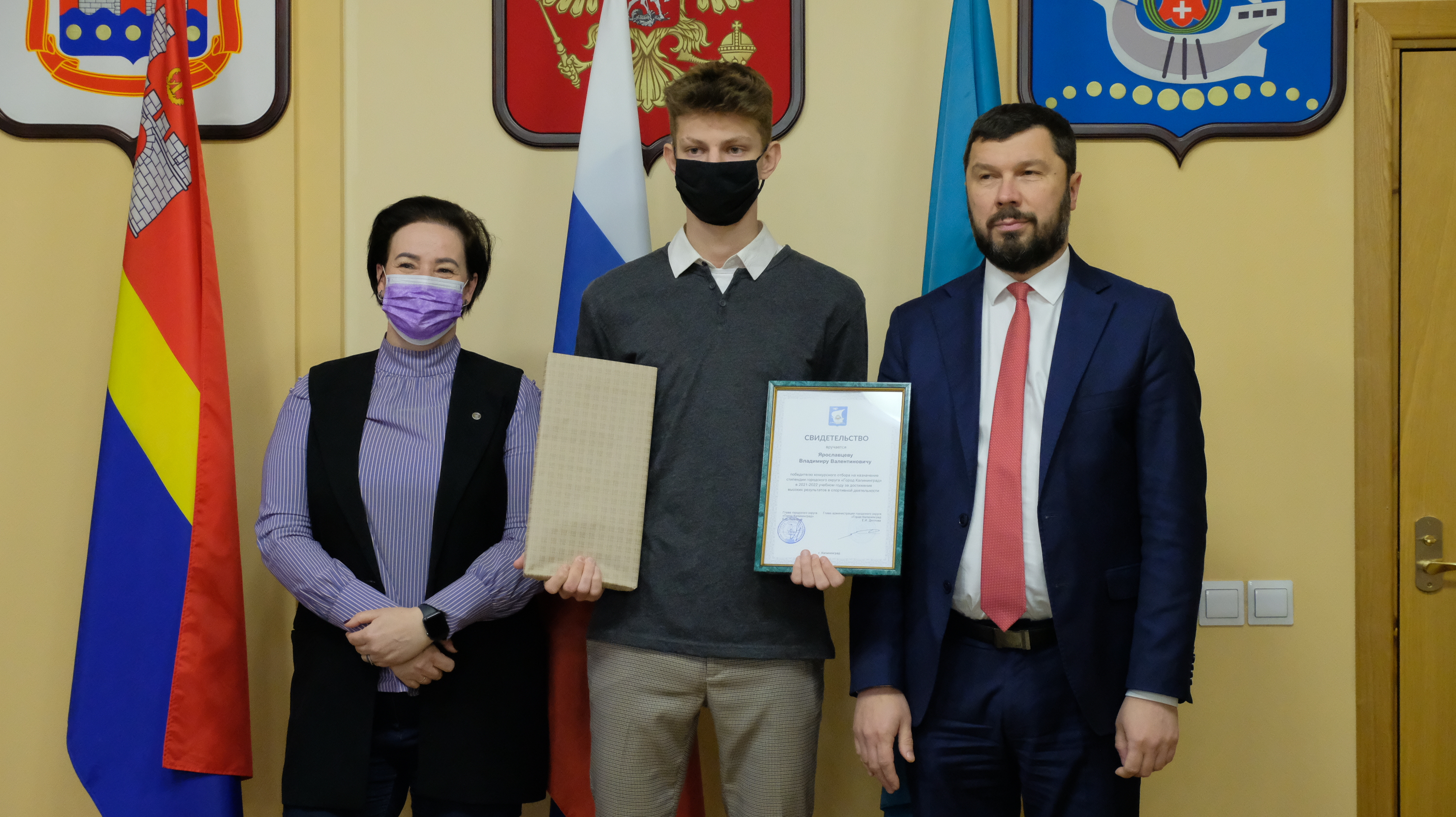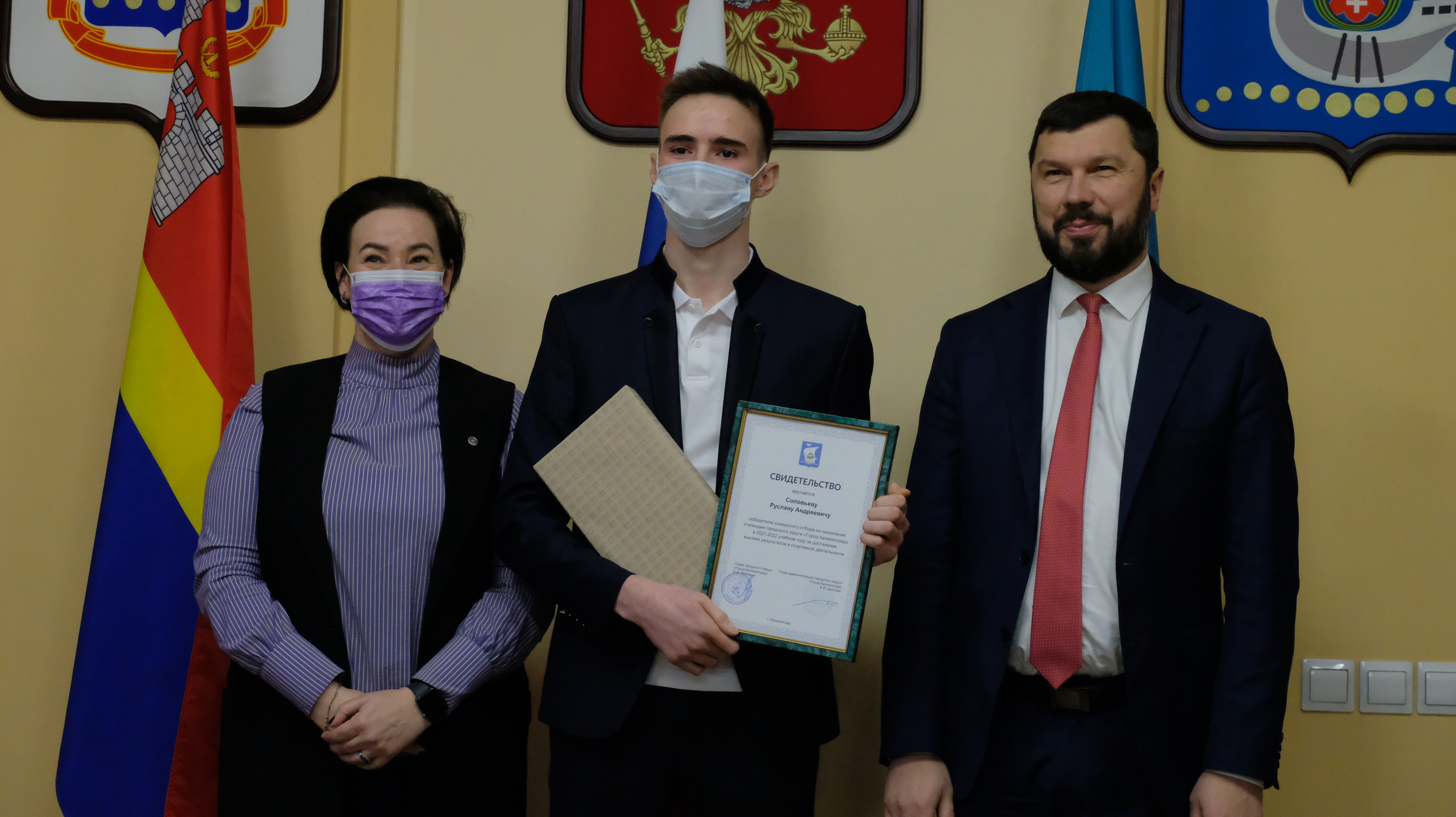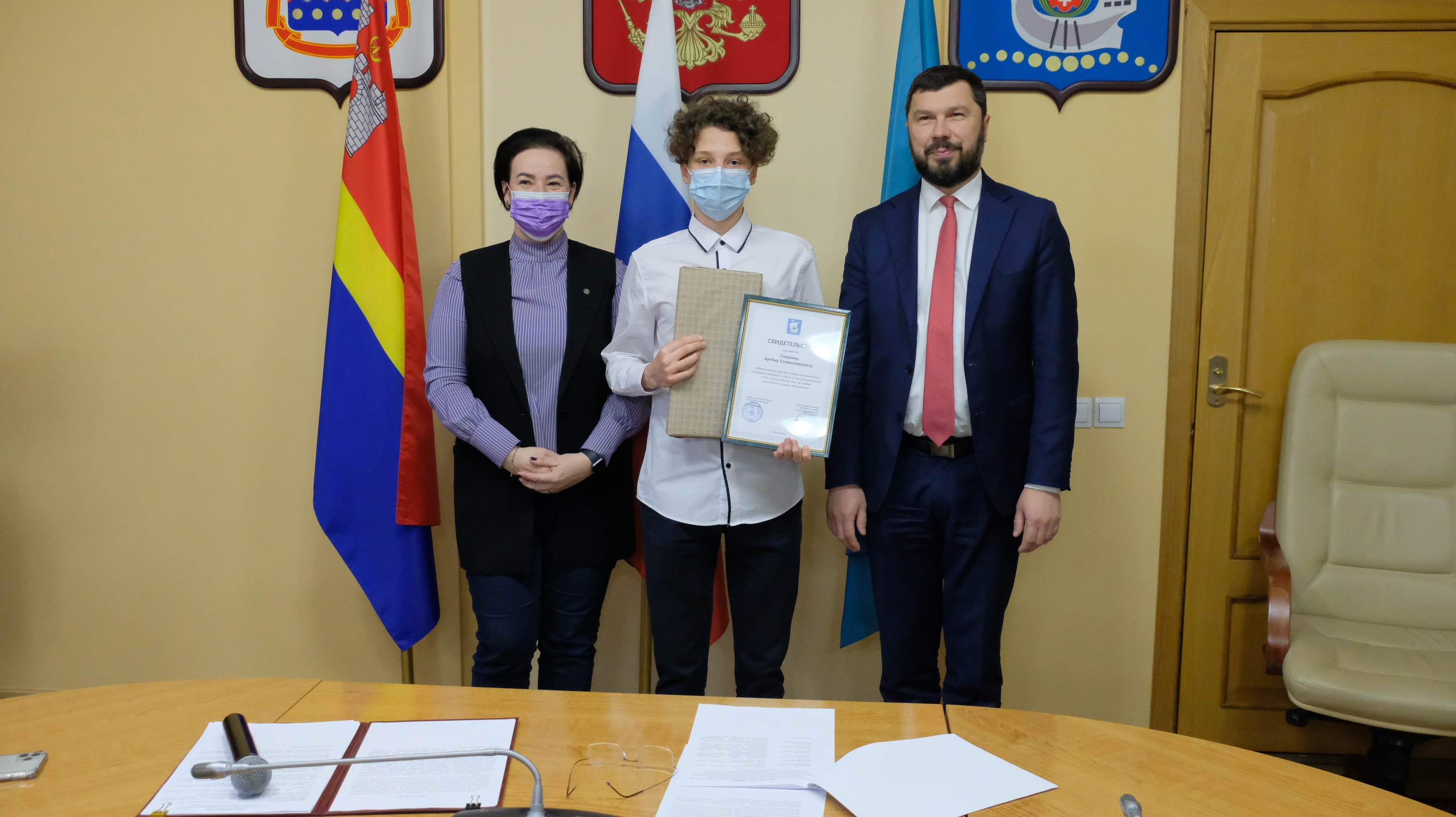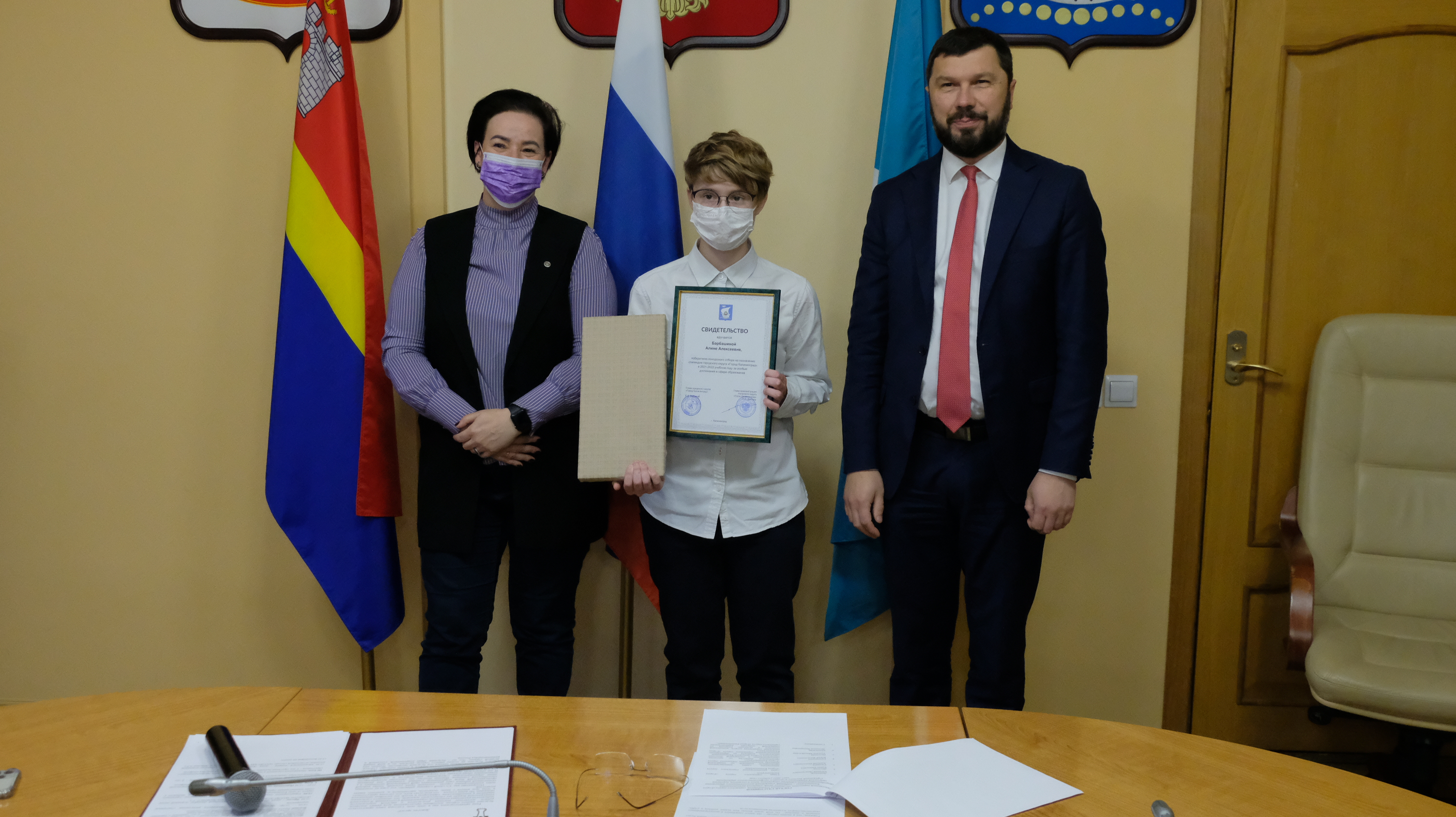 К сожалению, из-за ограничений, которые действуют в Калининграде, собрать всех ребят, чтобы каждому вручить сертификат невозможно. Поэтому сегодня в большом зале администрации города только 20 ребят, остальных будут чествовать в учреждениях.