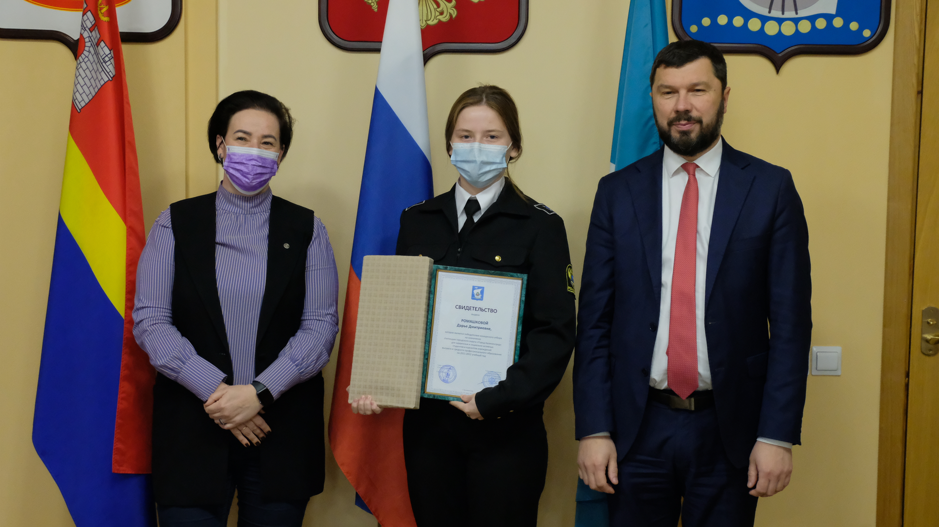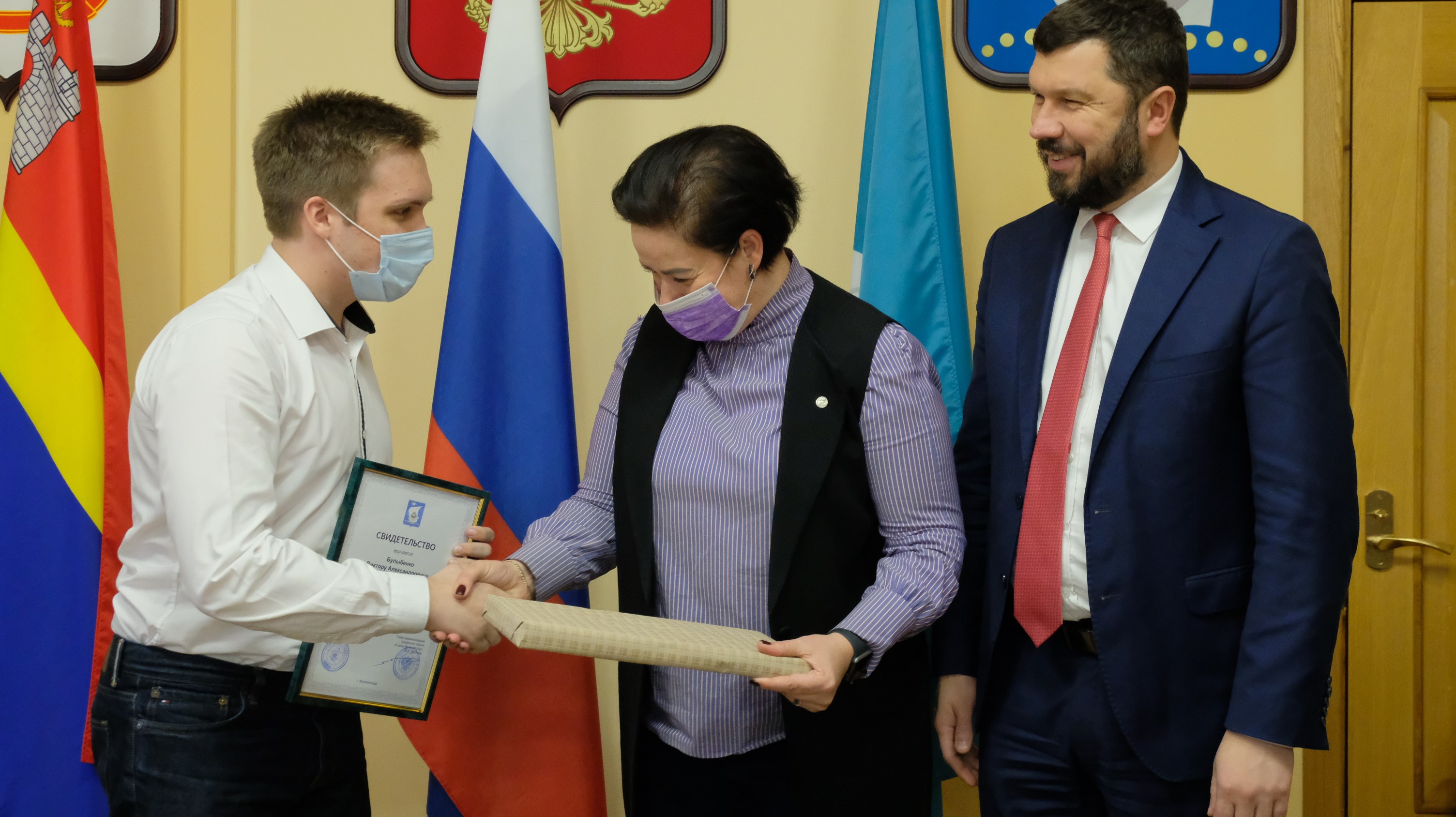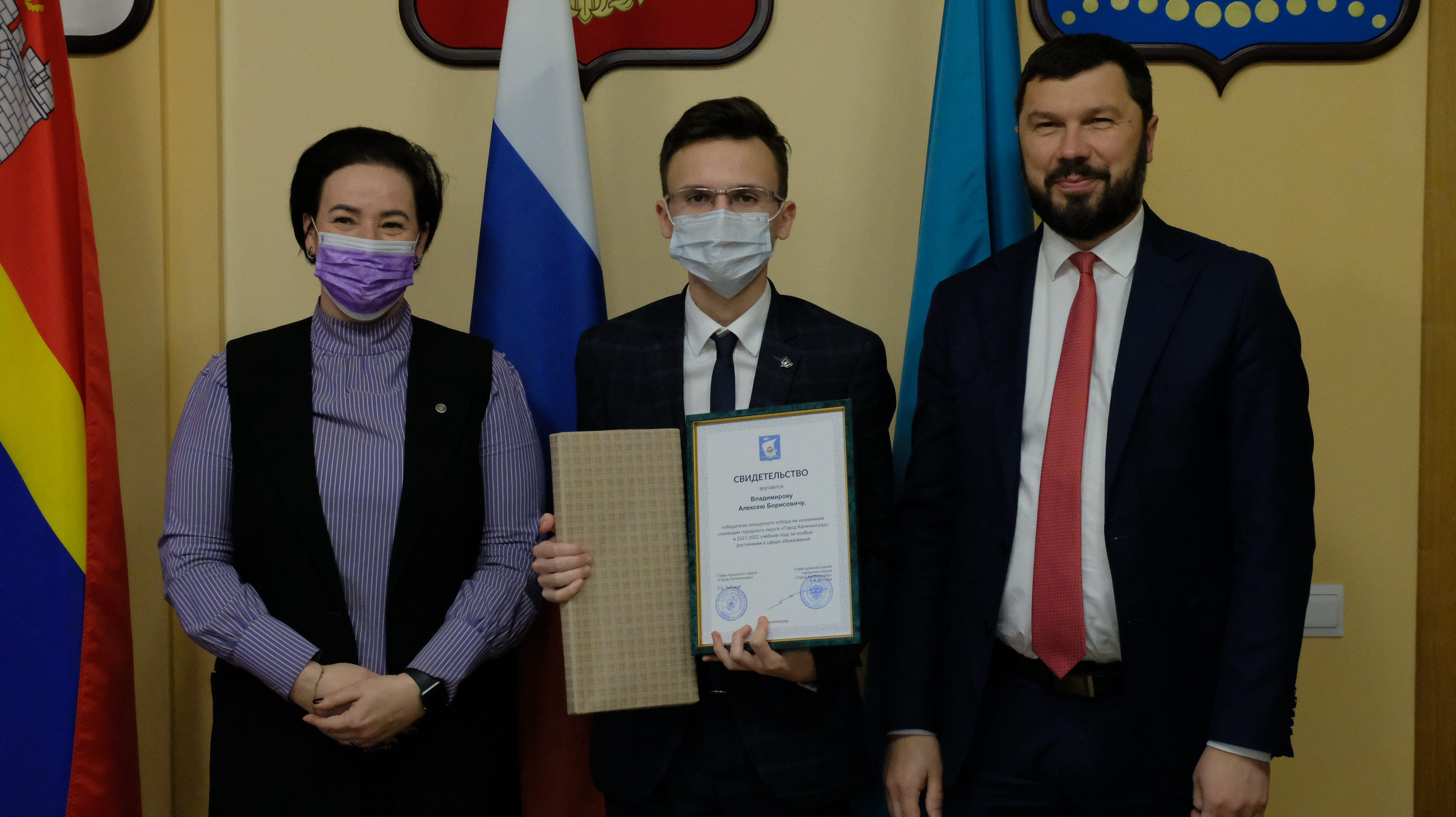 К сожалению, из-за ограничений, которые действуют в Калининграде, собрать всех ребят, чтобы каждому вручить сертификат невозможно. Поэтому сегодня в большом зале администрации города только 20 ребят, остальных будут чествовать в учреждениях.