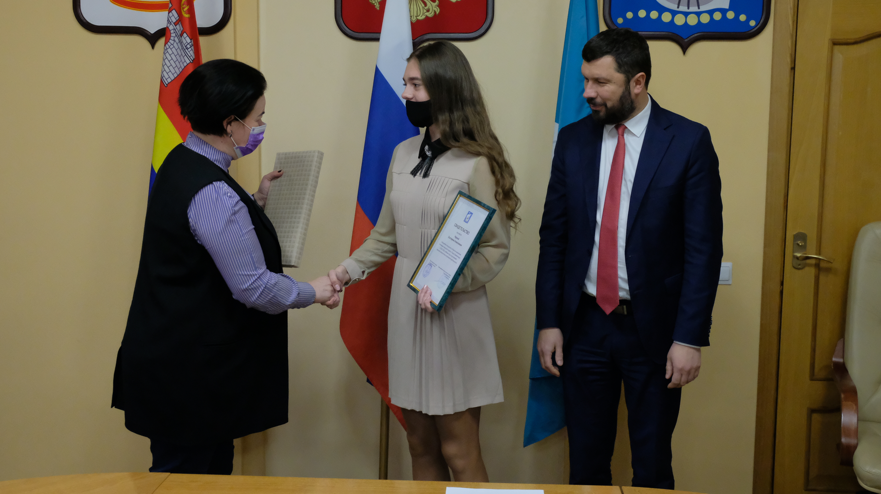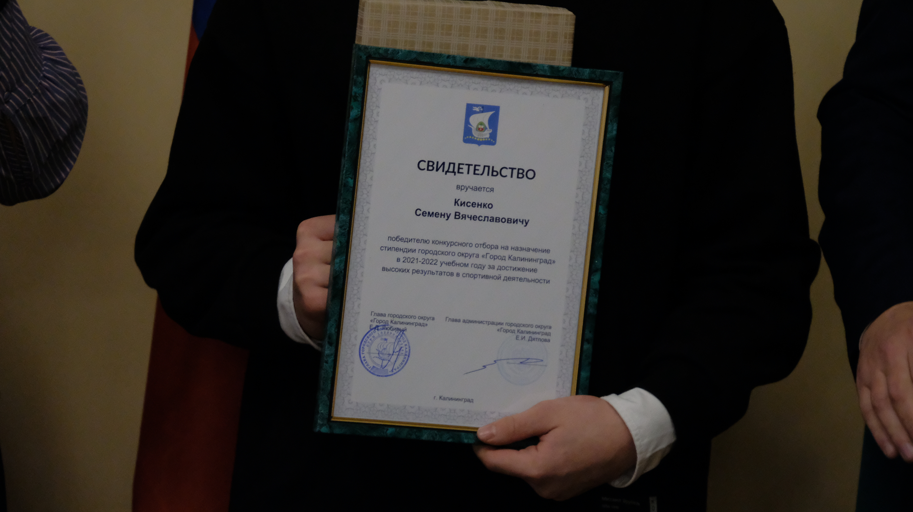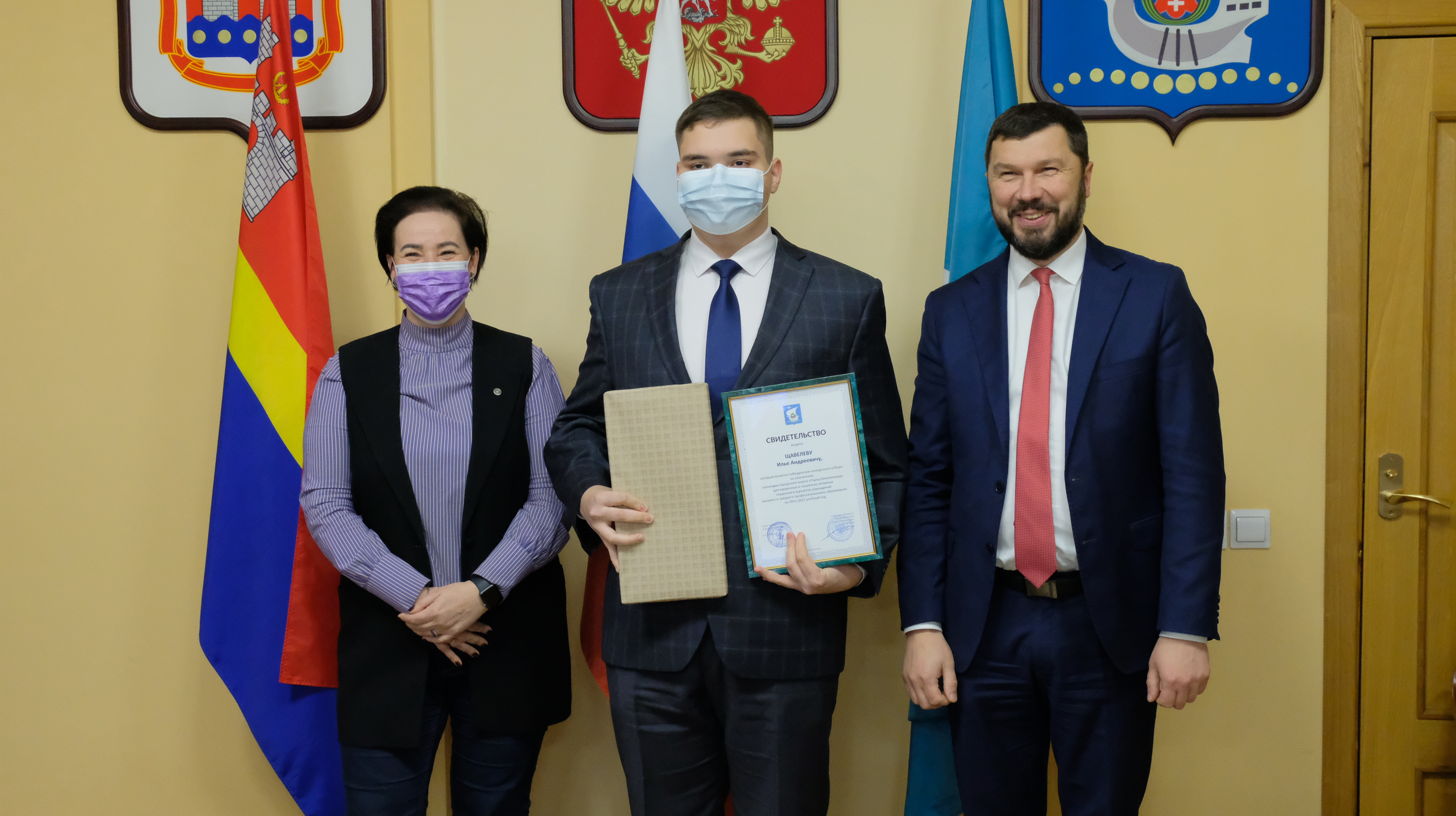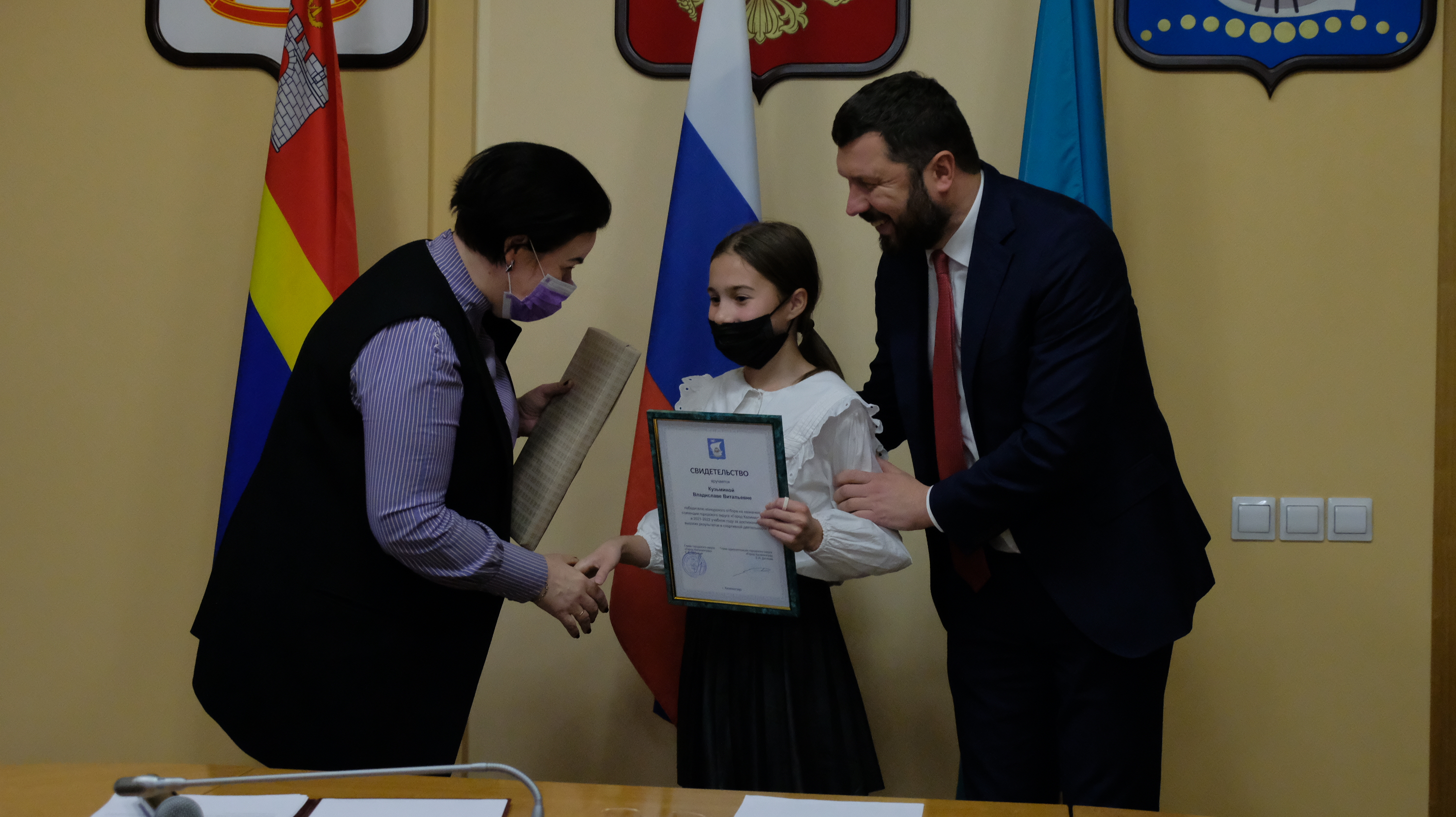 К сожалению, из-за ограничений, которые действуют в Калининграде, собрать всех ребят, чтобы каждому вручить сертификат невозможно. Поэтому сегодня в большом зале администрации города только 20 ребят, остальных будут чествовать в учреждениях.