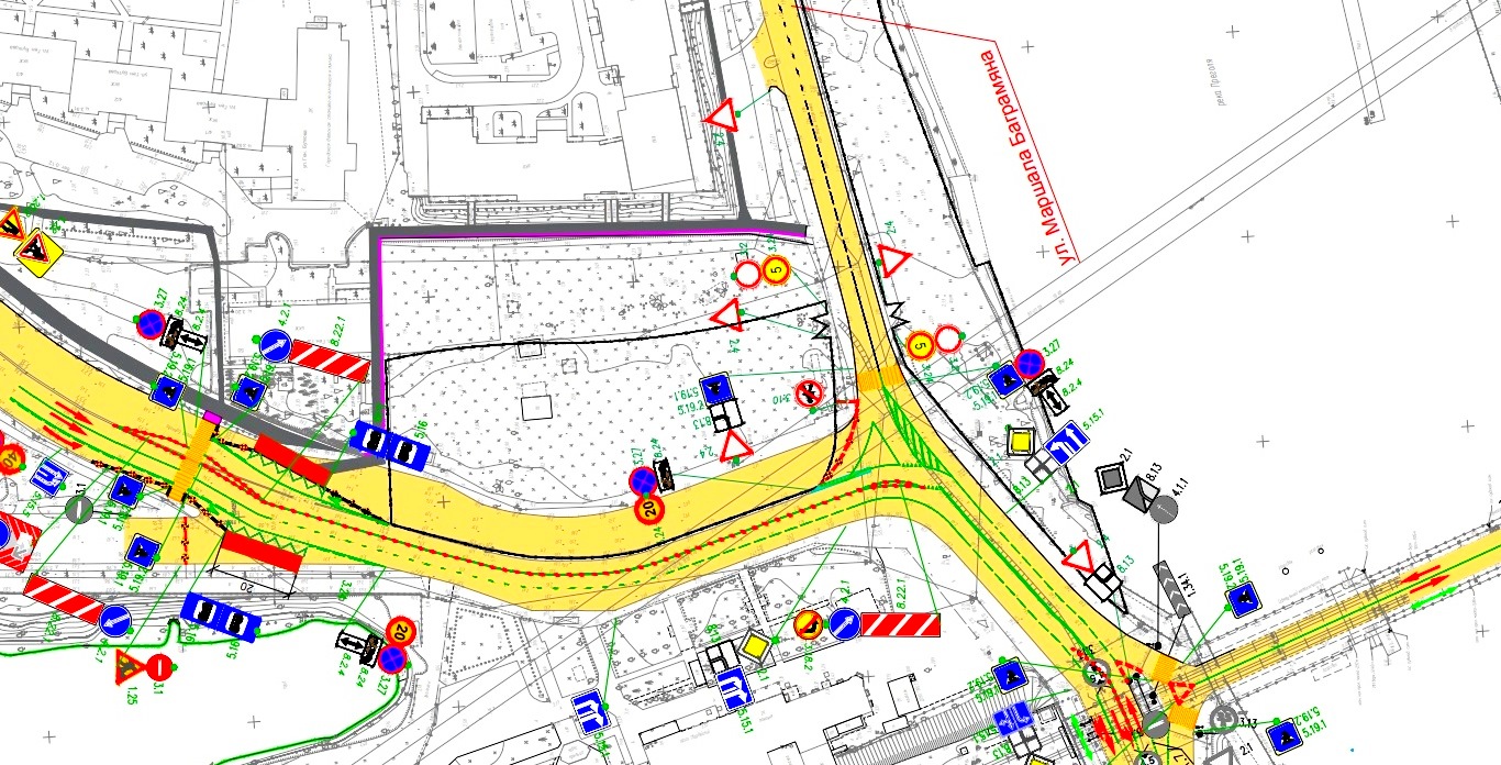 Уточняем - движение для строительства нового моста ограничат на участке от Правой набережной/Маршала Баграмяна до пешеходного перехода. Со стороны ул. Ген. Буткова строительное ограждение выставят по разделительной полосе, движение из центра направят по двум полосам, в центр – по одной. Левый поворот с Гвардейского проспекта на ул. Баграмяна будет запрещён.