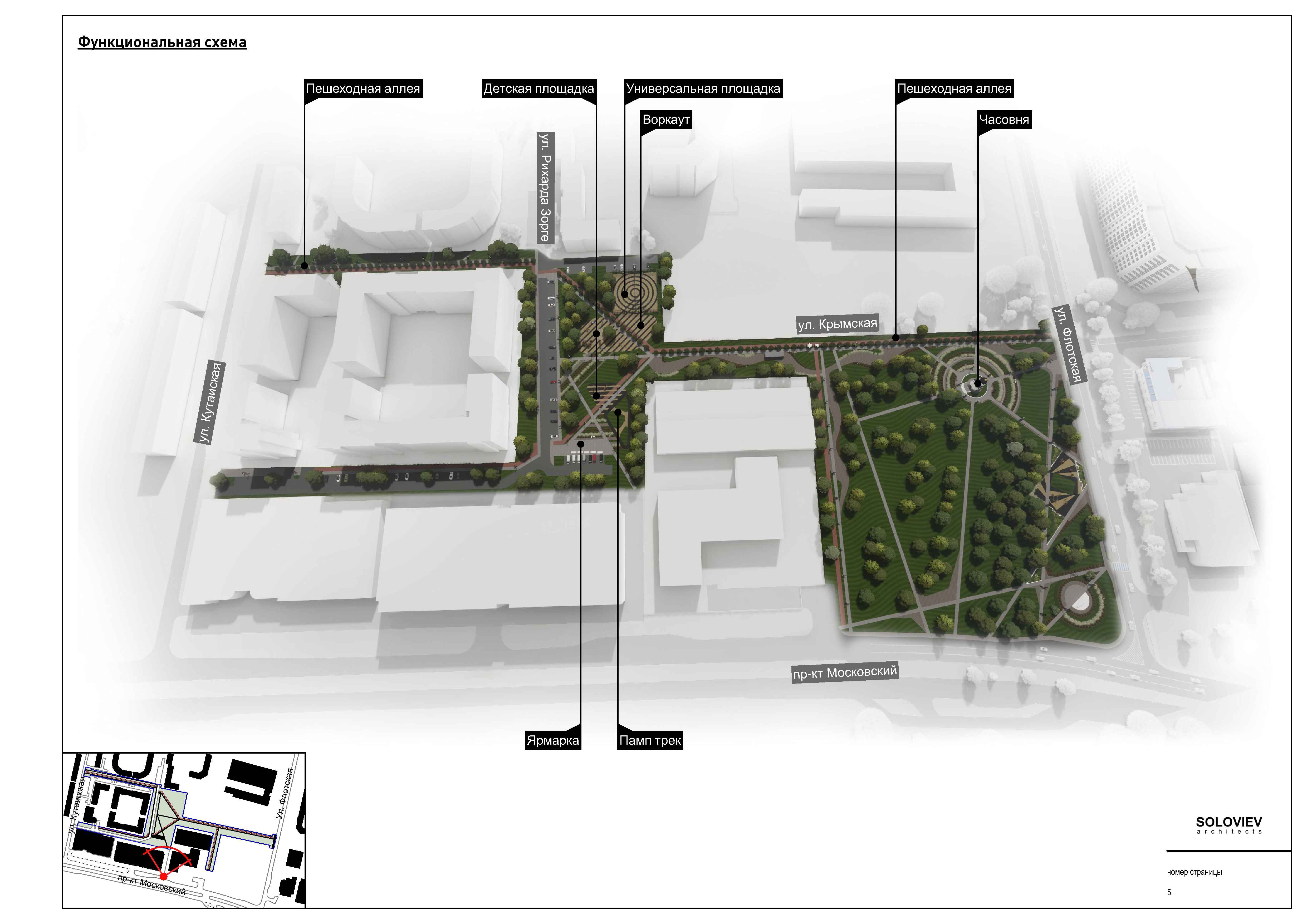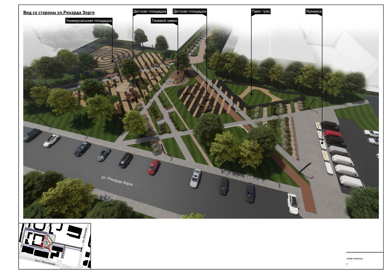 Вдоль школы №57 по ул. Крымской планируется благоустроенный бульвар. Здесь будут организованы пешеходные дорожки - транзитная и прогулочная, скамейки, беседки, небольшие уютные зоны отдыха формата «городская гостиная». Планируется активное озеленение. Ближе к улице Зорге планируются игровые площадки для детей разных возрастов с памп-треком, универсальные площадки для активного отдыха взрослых, воркаут. Для обеспечения доступности к данным площадкам планируется соединить автомобильным проездом улицы Краснопрудную и Зорге. Вдоль проезда будут организованы парковки общего пользования. Рядом с территориями активного отдыха разместится площадка для проведения тематических ярмарок. Здесь могут быть размещены и регулярные площадки для объектов выездной торговли, по примеру ярмарки выходного дня на площади Победы. На всей благоустраиваемой территории появится качественное освещение, велодорожки, скамейки, урны, плиточные и эко-покрытия. Озеленение территории - отдельная важная задача и тема для обсуждений. Предложения по концепции принимаются уже сегодня с целью учёта при актуализации материалов до конца года. А после Нового года планируем публично обсудить наработки, в том числе с учётом поступивших предложений.