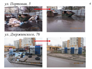 В ходе выездов выявлено 408 нарушений. Из них: 284 в части ненадлежащего санитарного состояния территорий; 24 за ненадлежащее санитарное состояние скверов и зеленых зон; 58 в части ненадлежащего технического состояния фасадов зданий, ограждений, объектов коммунальной инфраструктуры, в том числе наличие граффити. Установлено наличие 16 транспортных средств, имеющих признаки брошенных, а также 5 транспортных средств за парковку на газонах. В части ненадлежащего технического состояния установлен 21 объект инфраструктуры: люки колодцев канализации, дорожные знаки, столбы освещения.