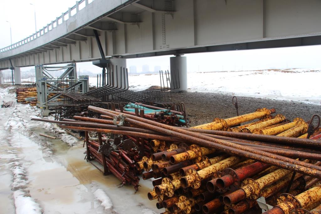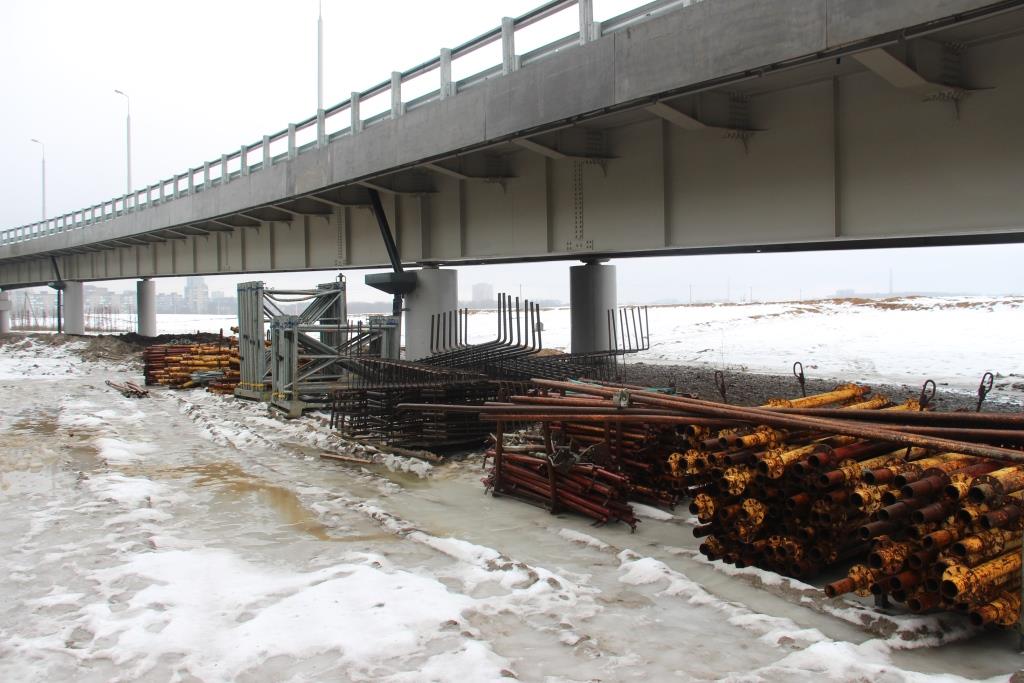 На сегодняшний день у пандуса №1 – забито 9 свай из 12 проектных, ростверк (армирование) выполнено на 90%, бетонирование приостановлено из-за погодных условий. У пандуса №2 свайное основание и ростверк выполнены полностью, выполняется армирование стоек, готовится опалубка под их бетонирование. Работы выполняются по графику.