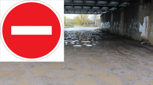 Движение закрыто для обеспечения безопасности дорожного движения при производстве ремонтных работ на железнодорожном путепроводе направления Калининград – Мамоново.